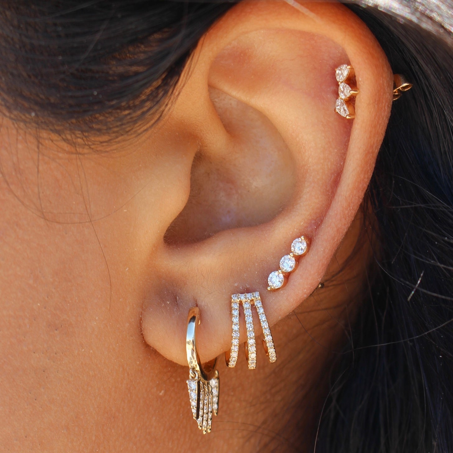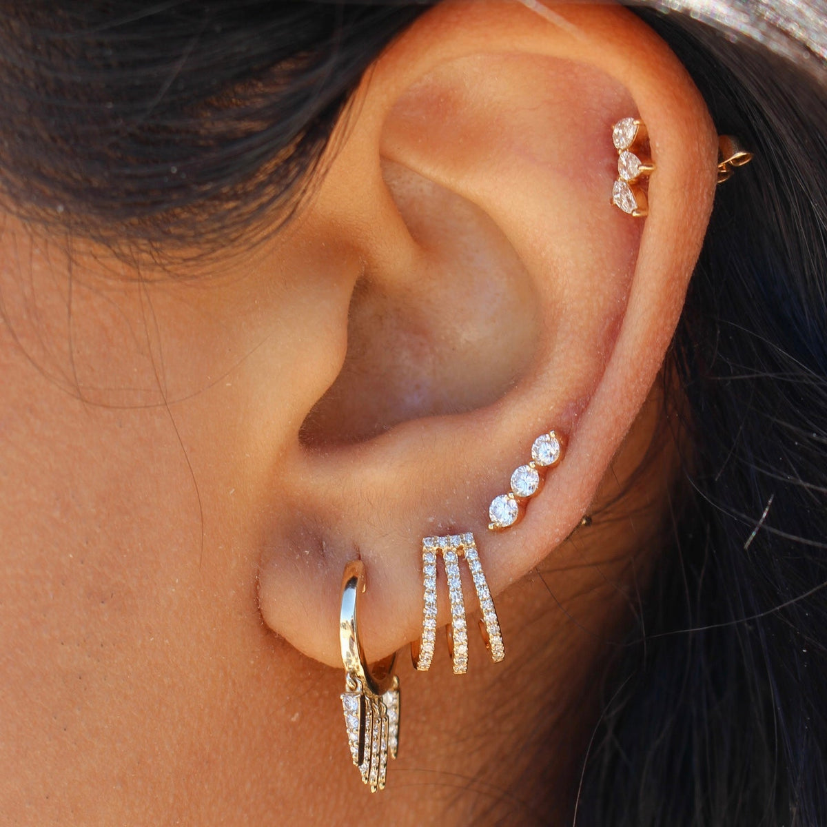 Gold Diamond Five Spike Hoop Earring