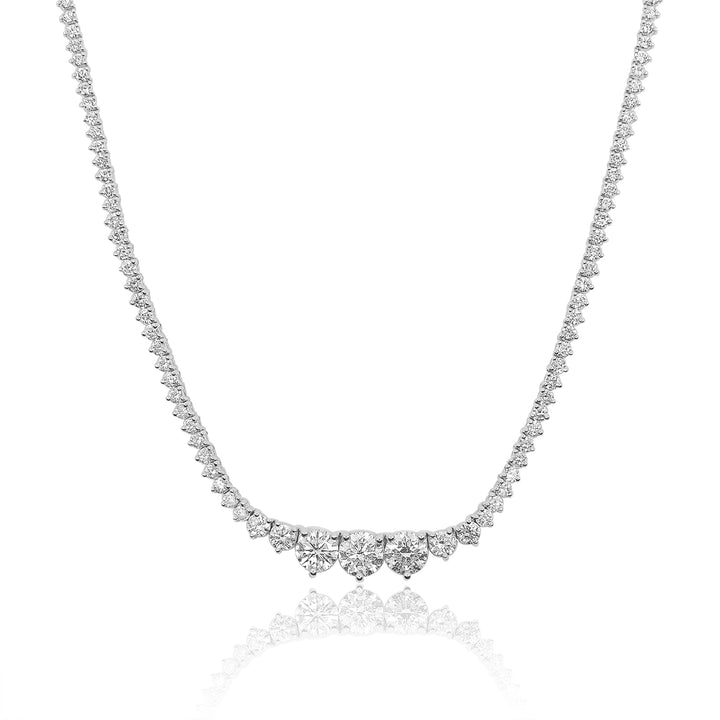 Gold Diamond Graduated Three Prong Tennis Necklace