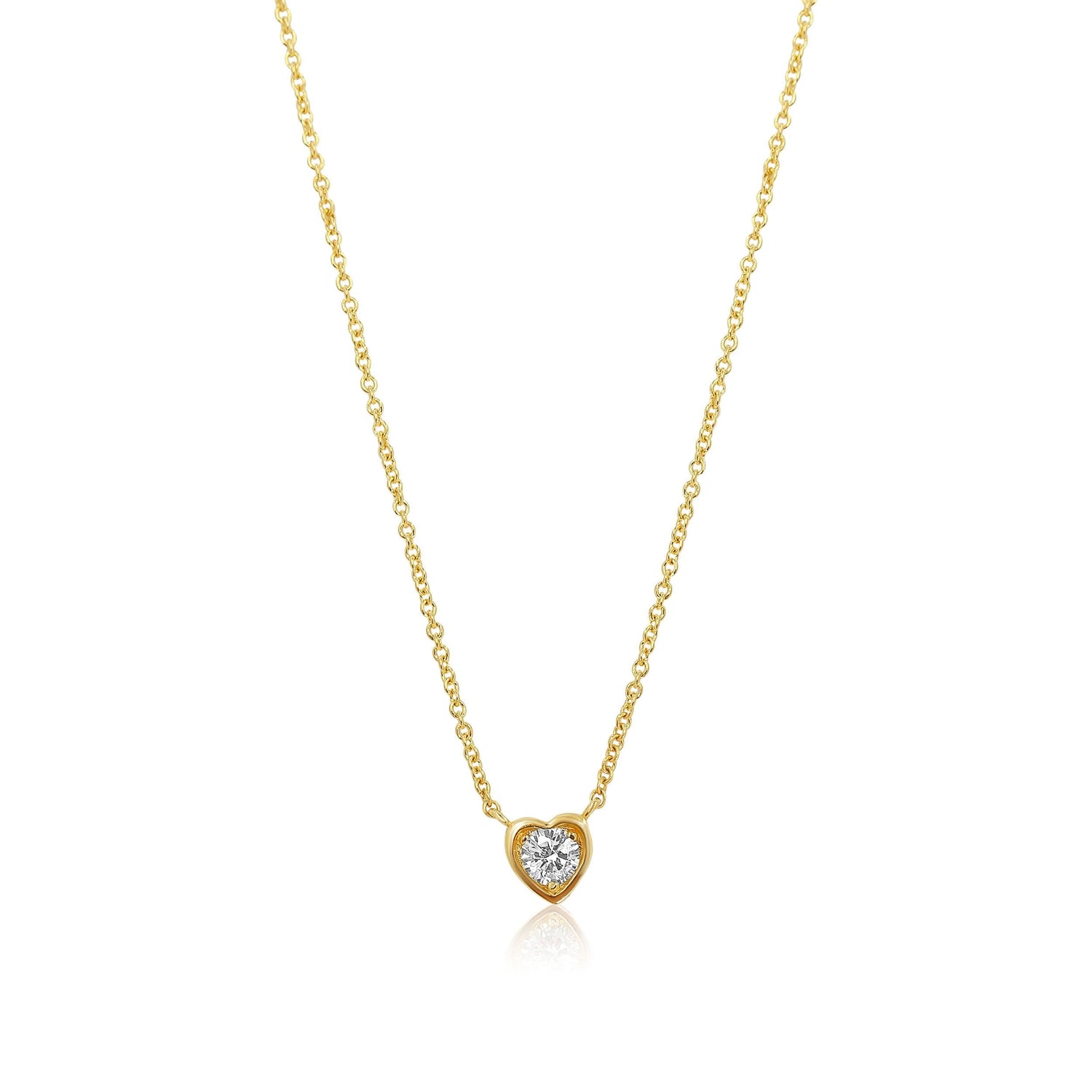 Gold Diamond Heart Necklace — This Gold Diamond Heart Necklace by Monisha Melwani is an elegant symbol of love. The heart-shaped design sparkles with diamonds, making it perfect for layering or wearing solo for a touch of understated luxury. A versatile piece that transitions from day to night with ease.