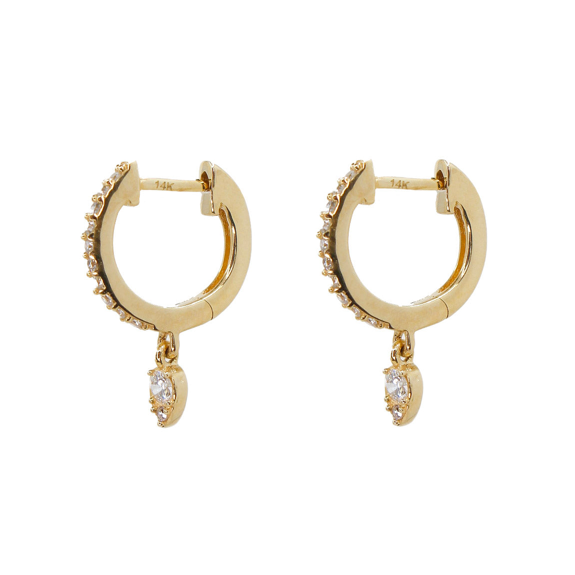Crafted in 14KT Gold with diamonds, available in 8mm and 10mm sizes. Sold as a single earring.