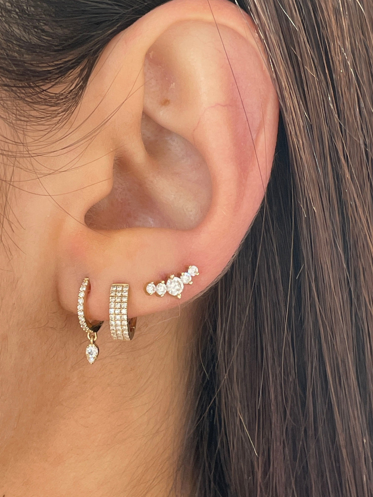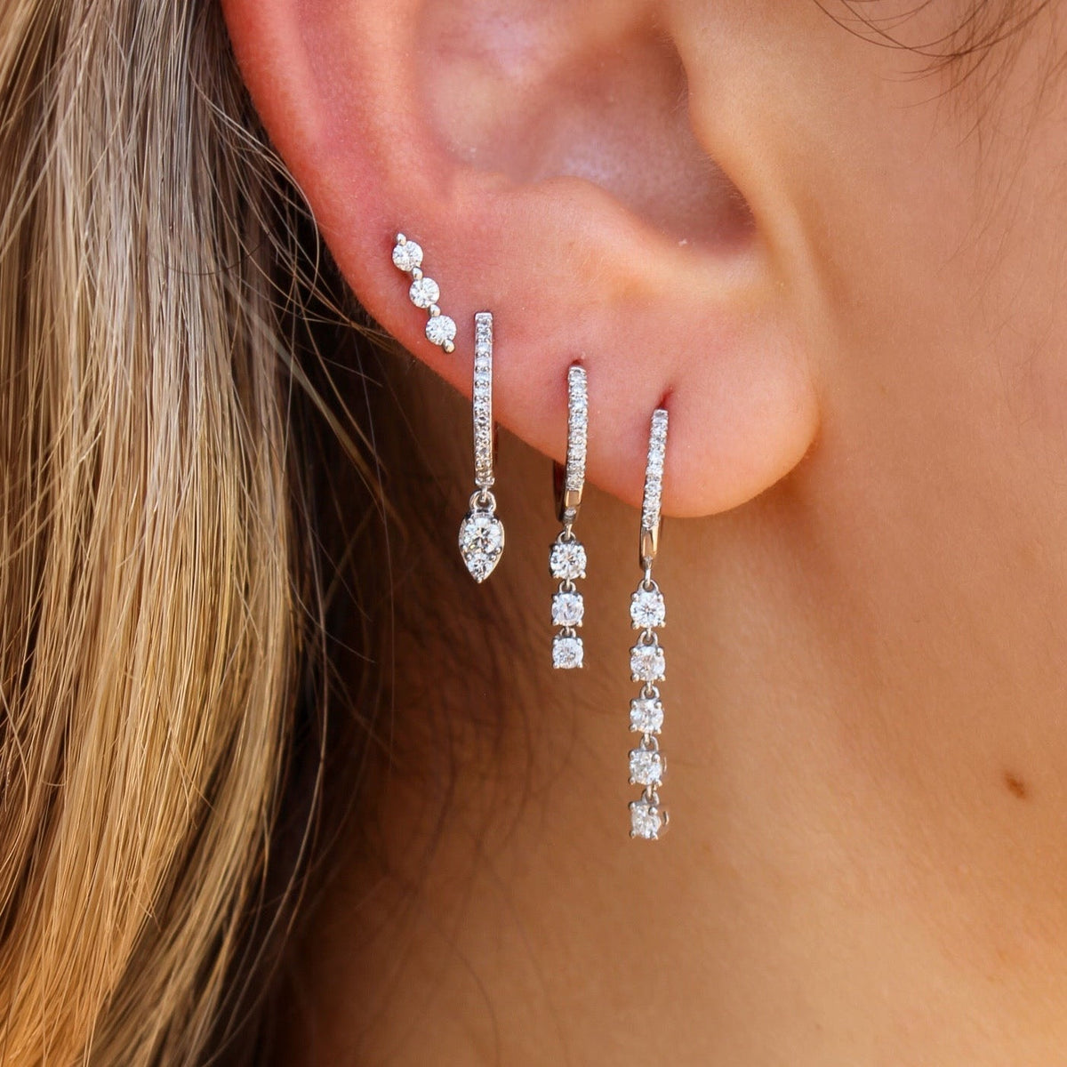 This Gold Diamond Hoop with Pear Illusion Drop by Monisha Melwani is a delicate yet impactful piece that exudes elegance and sophistication. The pear illusion drop adds a unique, eye-catching element to the classic diamond hoop design, making it perfect for those who seek subtle luxury with a twist.