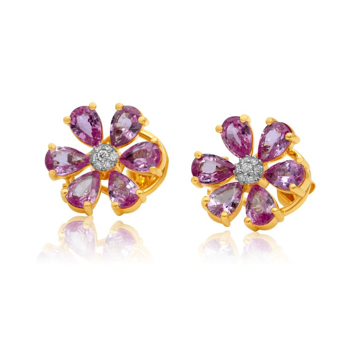 Gold Diamond Light Pink Sapphire Flower Earring
