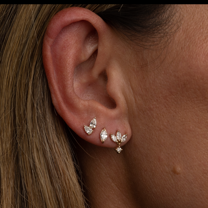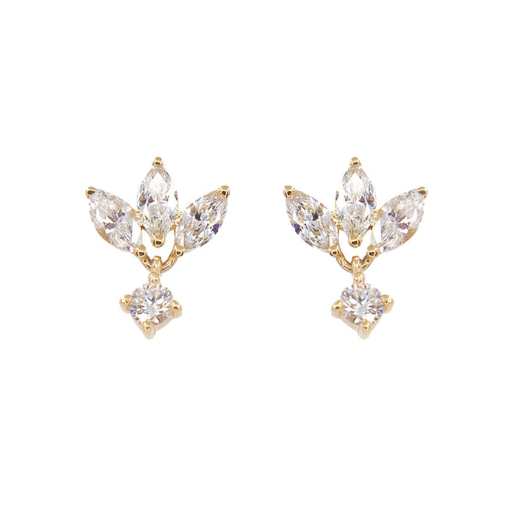 The Gold Diamond Lotus Drop Earring by Monisha Melwani is a graceful and sophisticated piece that adds a touch of luxury to any outfit. The lotus design, paired with diamonds, makes this earring an elegant addition to your collection.