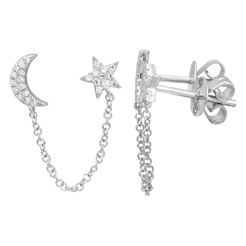 The Gold Diamond Moon Star Chain Connecting Earring by Monisha Melwani brings the beauty of the night sky to your jewelry collection. This celestial piece features a delicate moon and star motif, connected by a fine gold chain, evoking a sense of wonder and elegance. The brilliant-cut diamonds add a touch of sparkle, making this earring perfect for those who want to infuse their style with a hint of the cosmos. Ideal for wearing as a statement piece or pairing with other accessories, it’s versatile enough for both casual and formal occasions.