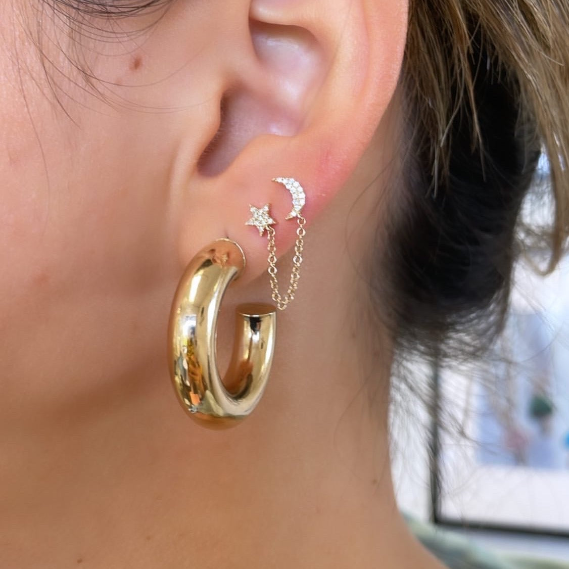 Crafted in 14KT Gold, weighing 1.99 grams, and set with 0.10 carats of ethically sourced brilliant-cut diamonds. Available in yellow, white, and rose gold. Requires two piercings and sold as a single earring.
