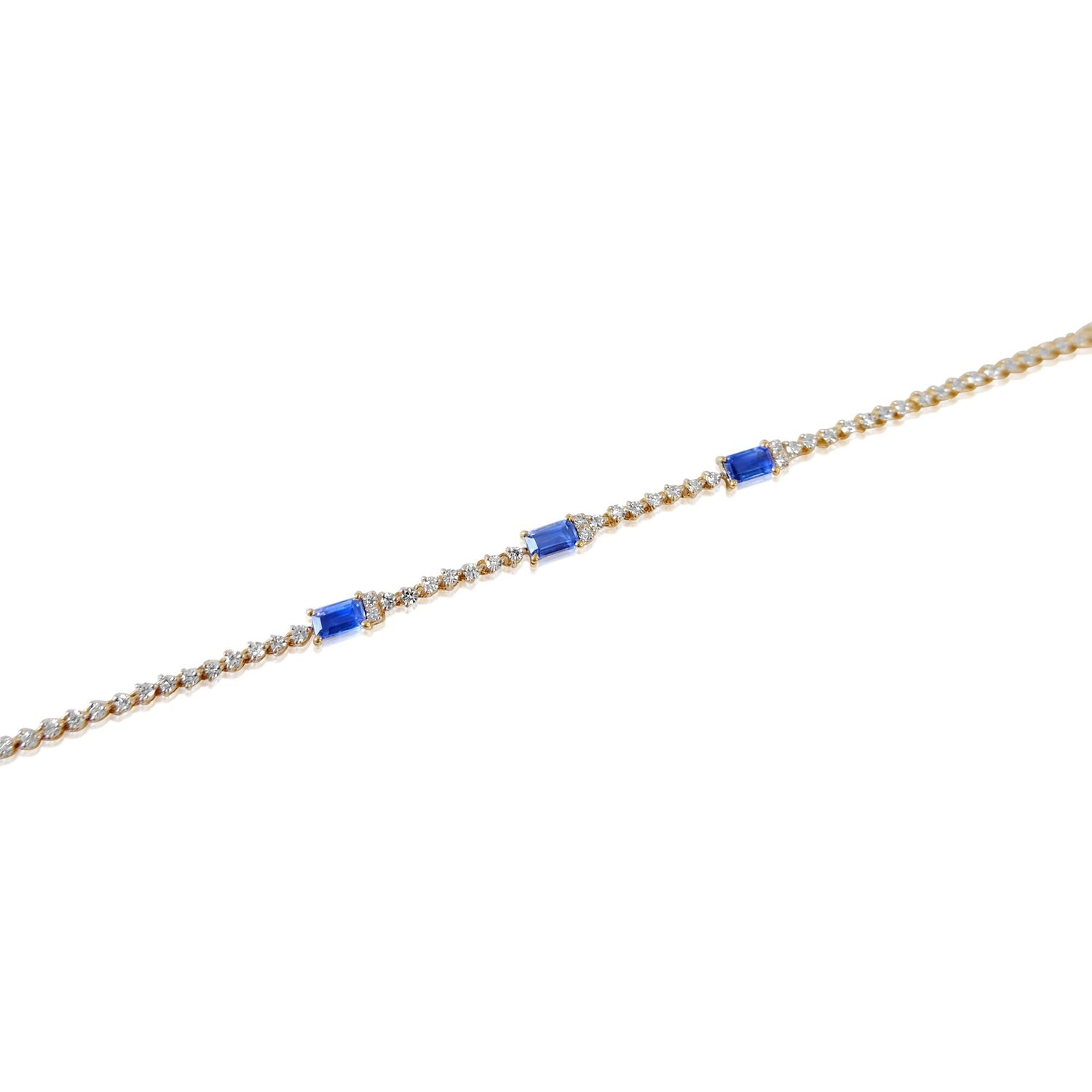 Gold Diamond Rectangle Sapphire Tennis Bracelet