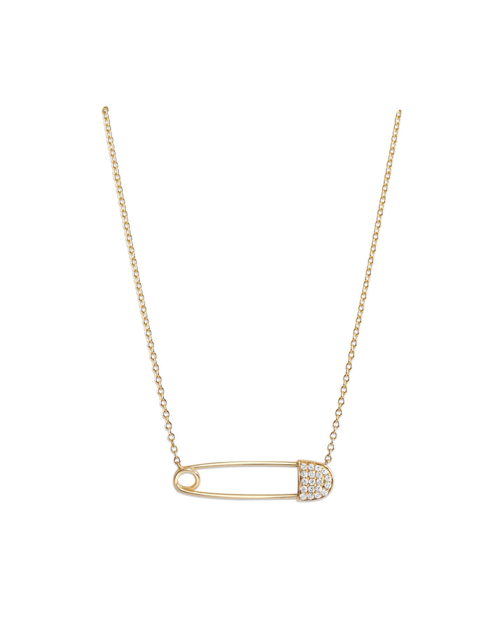 Gold Diamond Safety Pin Necklace