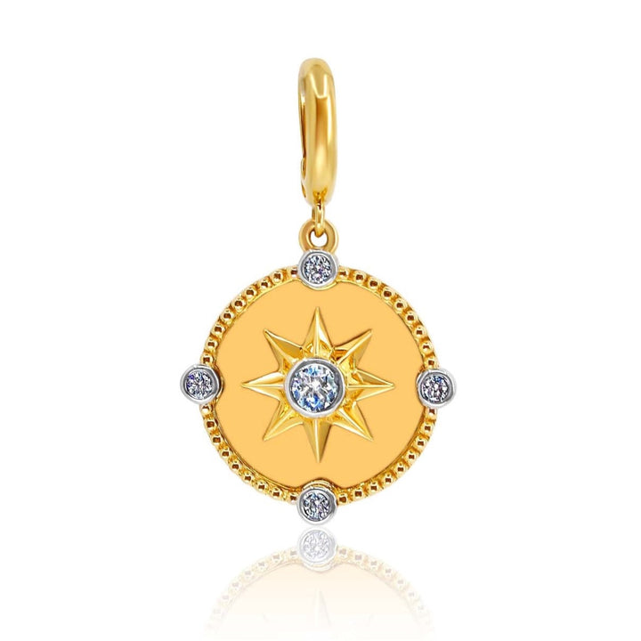 This Gold Diamond Star Compass Pendant by Monisha Melwani features a beautifully crafted star design that symbolizes guidance and direction. Set in 14K yellow gold and adorned with diamonds, this pendant adds a touch of elegance and meaning to any necklace.