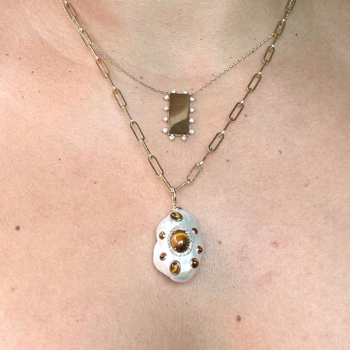 Gold Diamond Tiger Eye Baroque Pearl Pendant
