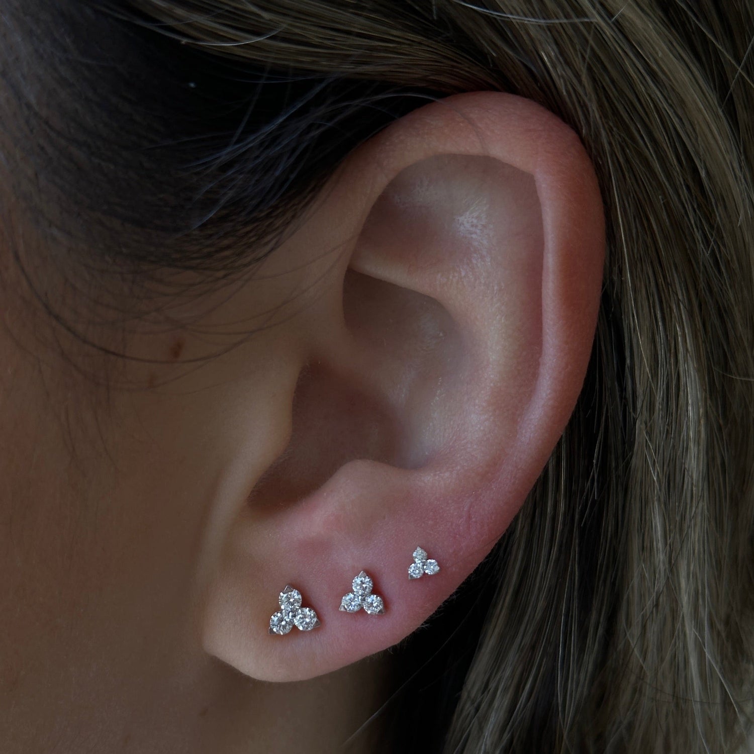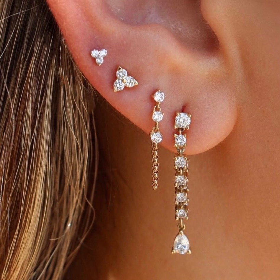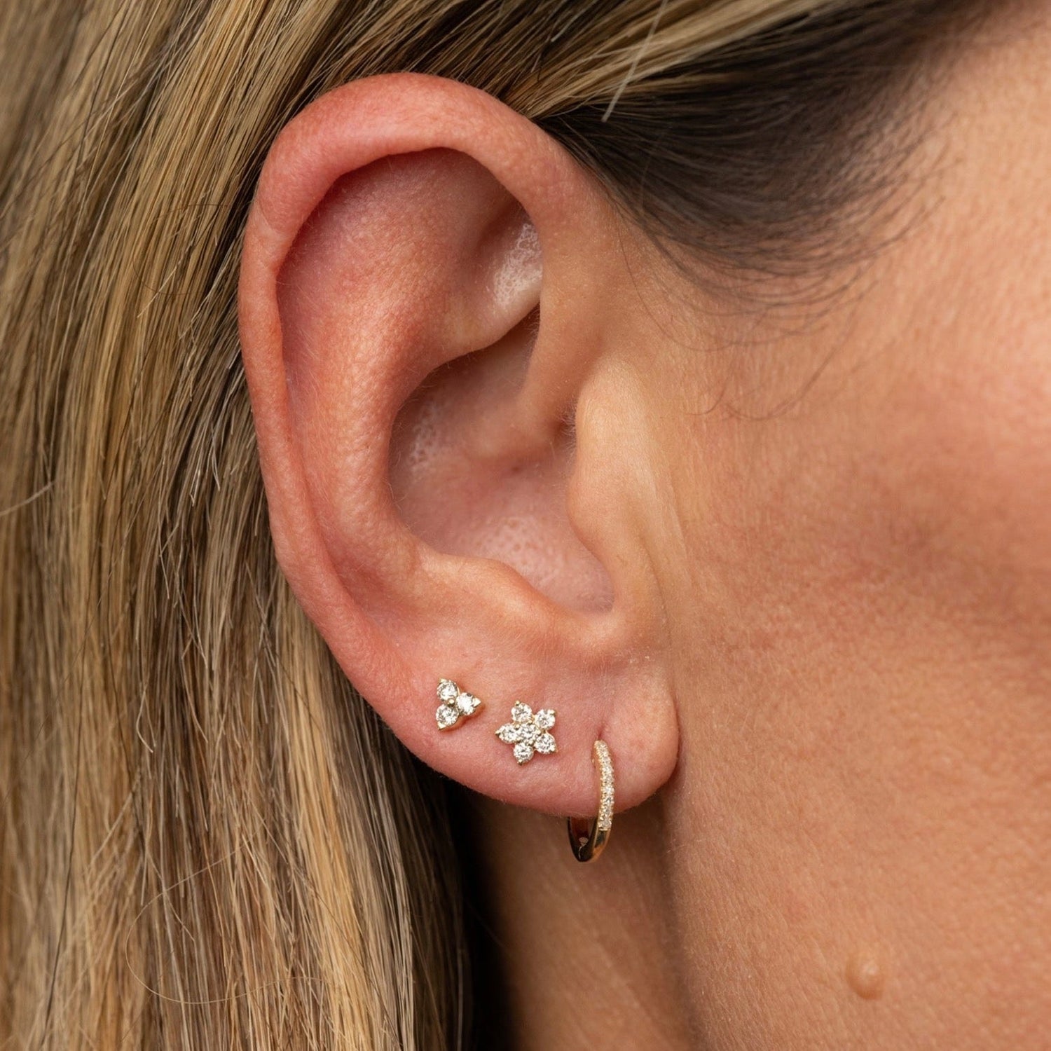 This Gold Diamond Trio Earring by Monisha Melwani features a unique trio design that showcases diamonds in three different sizes: small, medium, and large. Crafted in 14KT gold, these earrings offer versatility and elegance, making them a perfect choice for any occasion. Sold as a single, they can be worn alone for a subtle statement or paired with other earrings for a layered look.