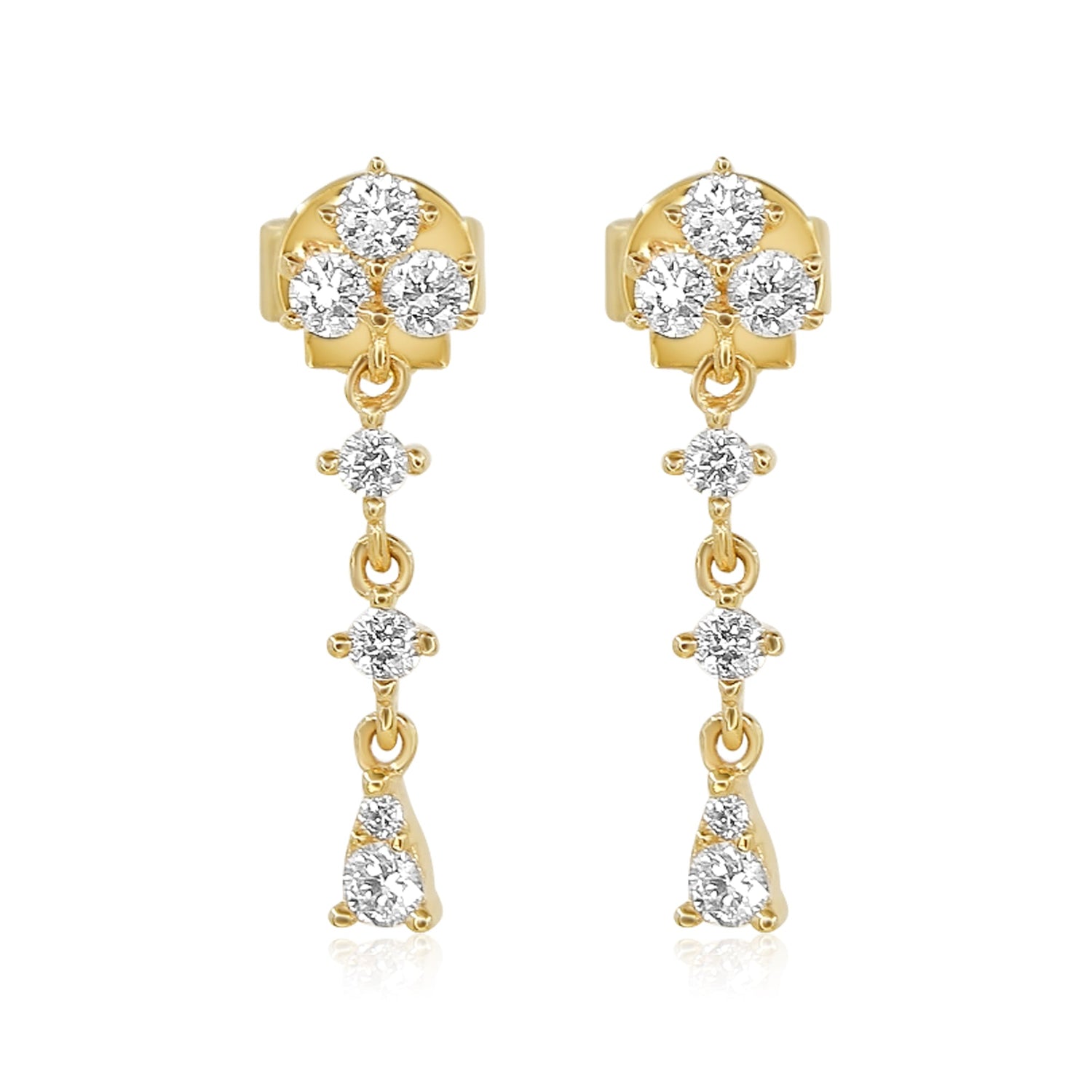 Gold Diamond Trio Prong Drop Earring
