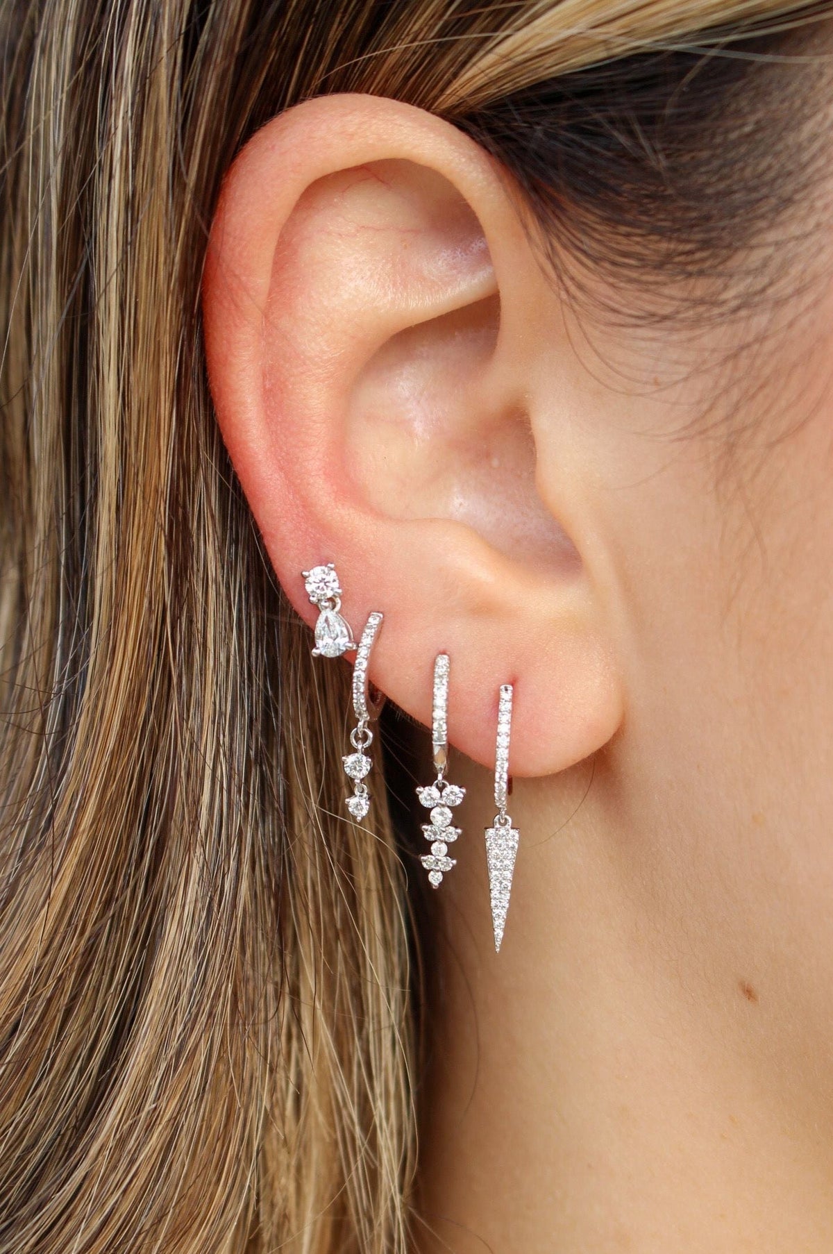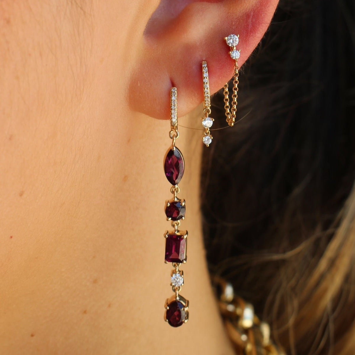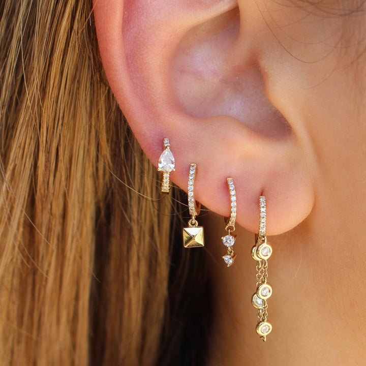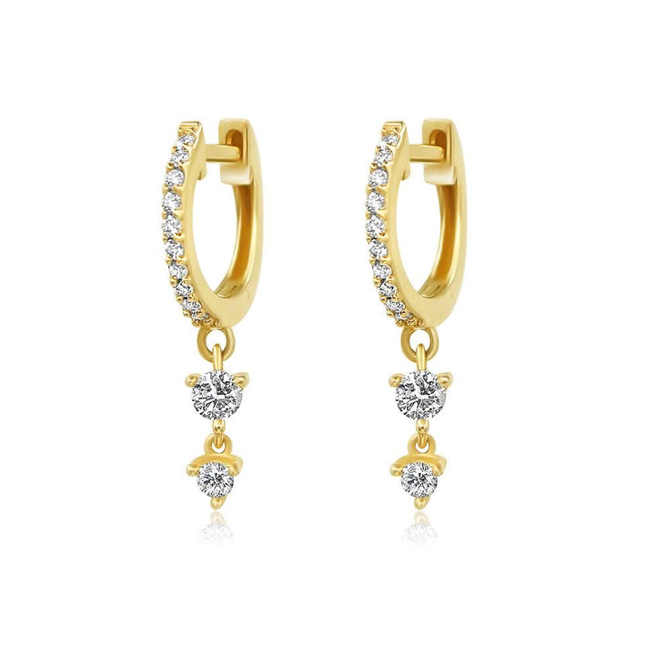Gold Double Diamond Drop Hoop Earring