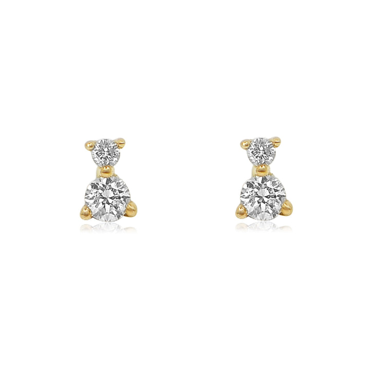 This Gold Double Diamond Prong Stud Earring by Monisha Melwani showcases a sophisticated double diamond setting, with each stone meticulously held by elegant prongs in lustrous 14KT yellow gold. Symbolizing understated luxury, these earrings add a refined sparkle to any daily ensemble. Perfect for both casual and formal occasions, they exemplify expert craftsmanship and timeless elegance.