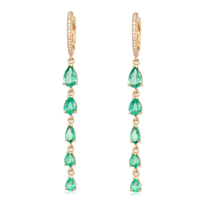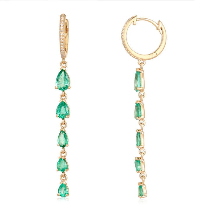 Gold Emerald Pear Five Drop Hoop Earrings