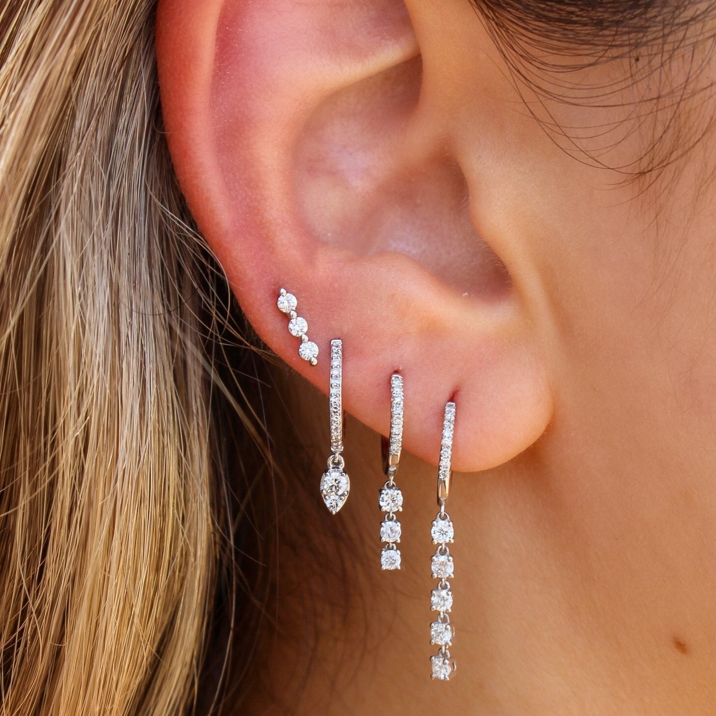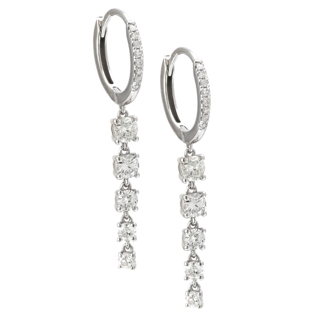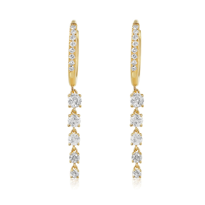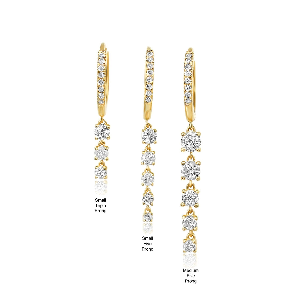 Gold Five Graduated Prong Diamond Hoop Earrings