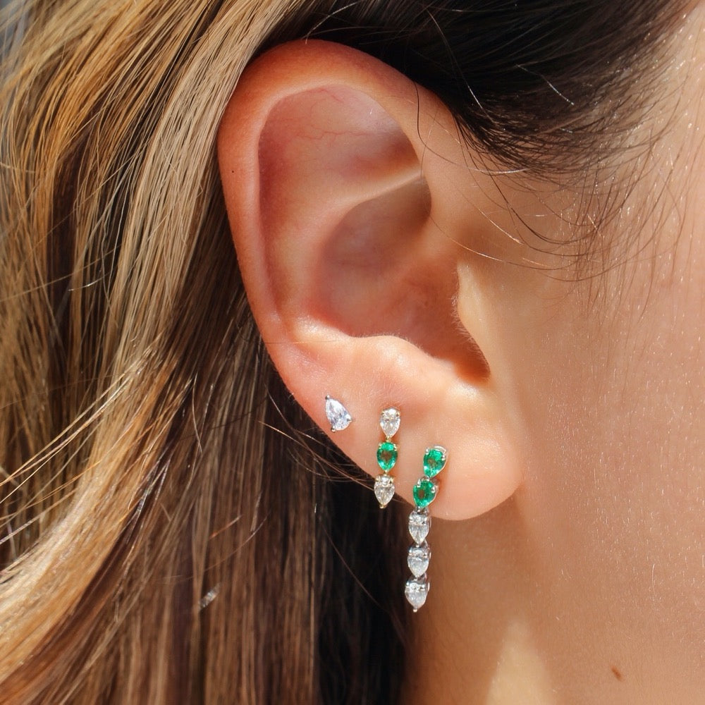 Gold Five Pear Diamond and Emerald Drop Earring