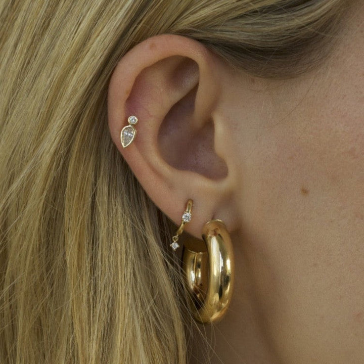 Crafted in 14KT yellow gold. Measures 28mm. Sold as a pair. Available for preorder.
