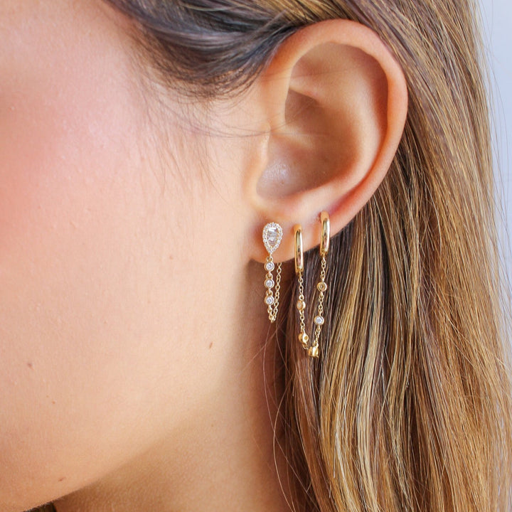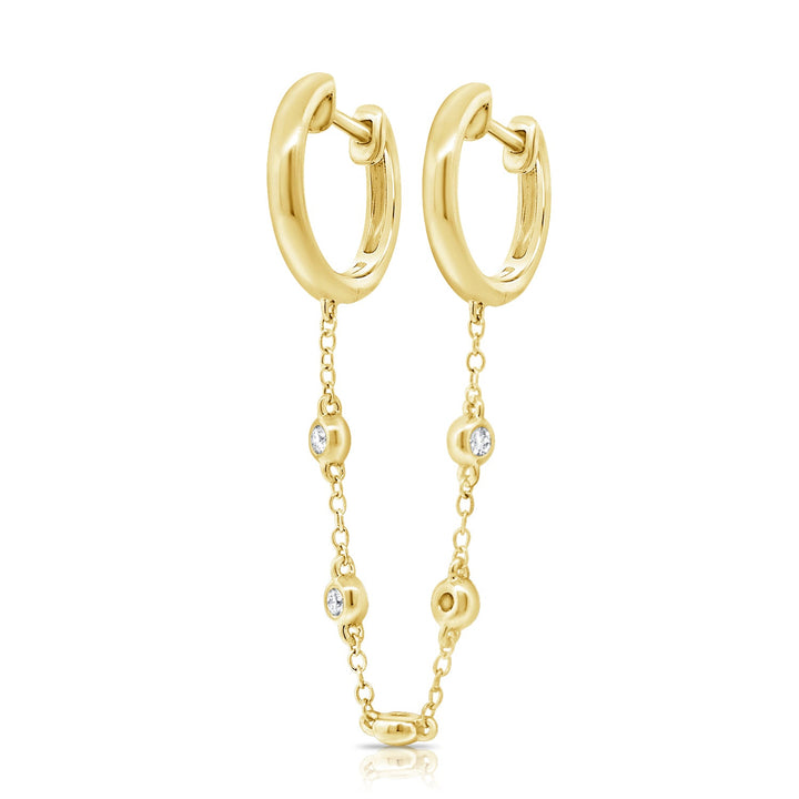 Gold Hoop Spaced Bezel Diamond Connecting Earring