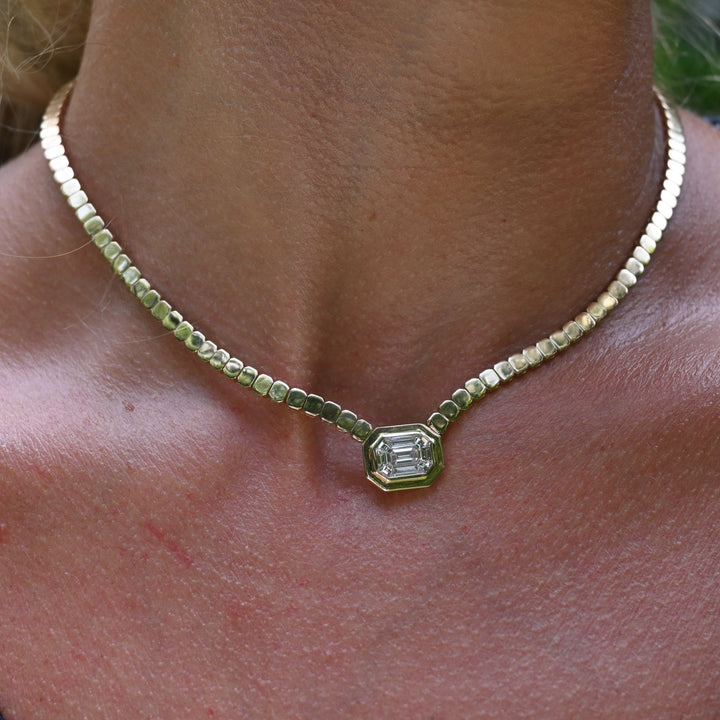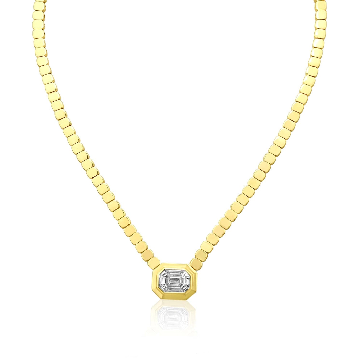 Gold Illusion Diamond Bezel Square Shape Necklace