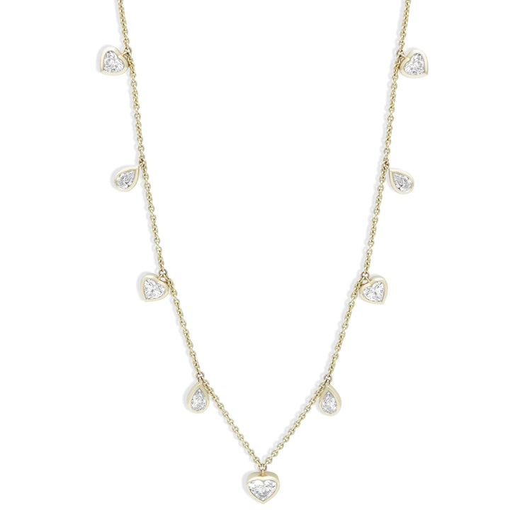 Gold Lab Grown Diamond Multi Heart and Pear Drop Necklace