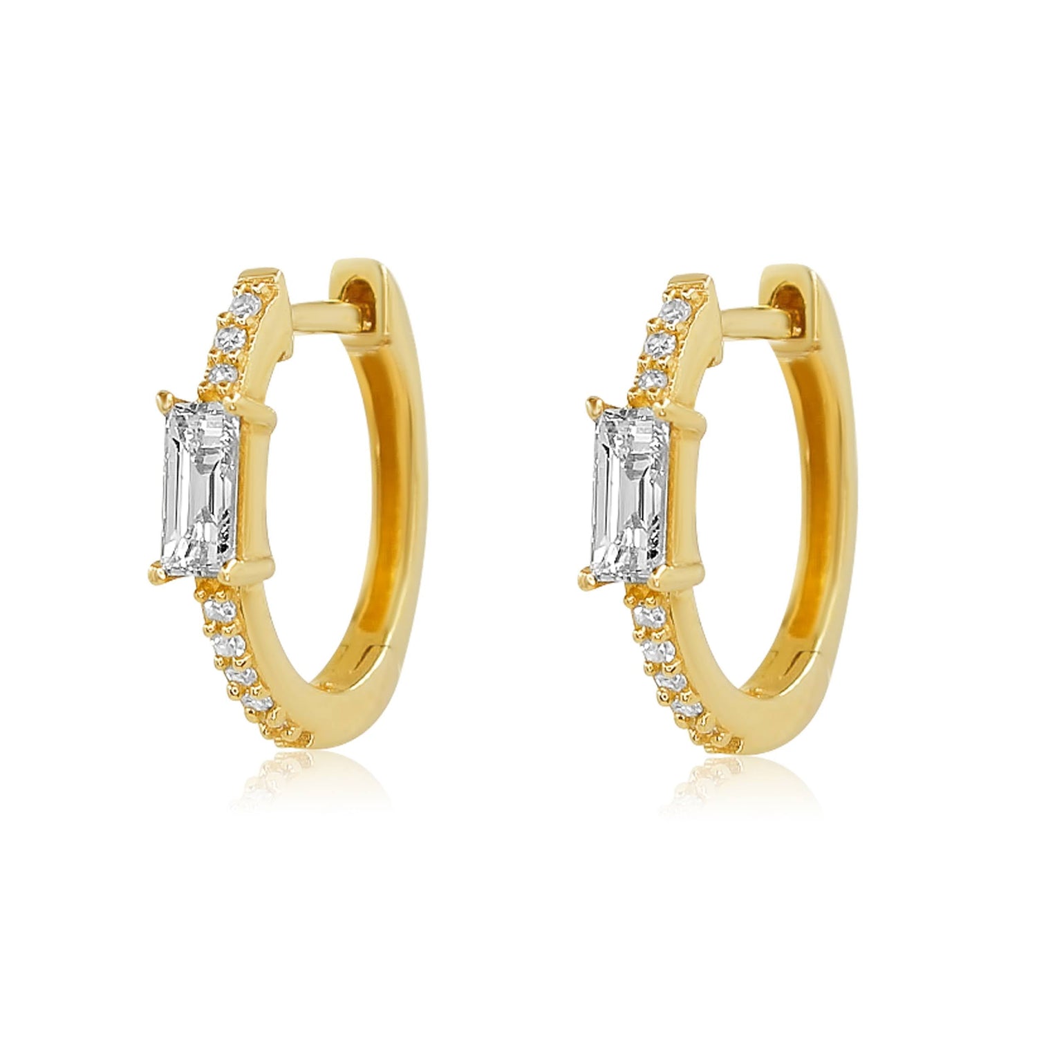 Gold Multi Diamond Baguette Hoop Earrings