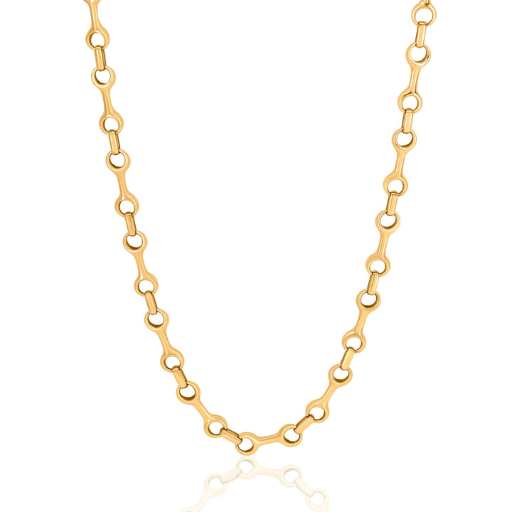 This Gold Multi Ring Chain Necklace by Monisha Melwani is crafted in 14k yellow gold, showcasing a modern and stylish design. Measuring 16 inches and weighing 10.1 grams, this necklace is perfect for layering or wearing alone, adding a touch of elegance to any outfit.