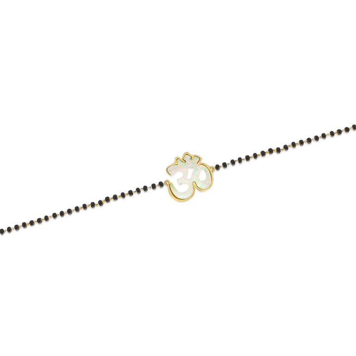 Crafted in 14k yellow gold with an Opal Om design. Measures 6 inches + 1-inch extension.