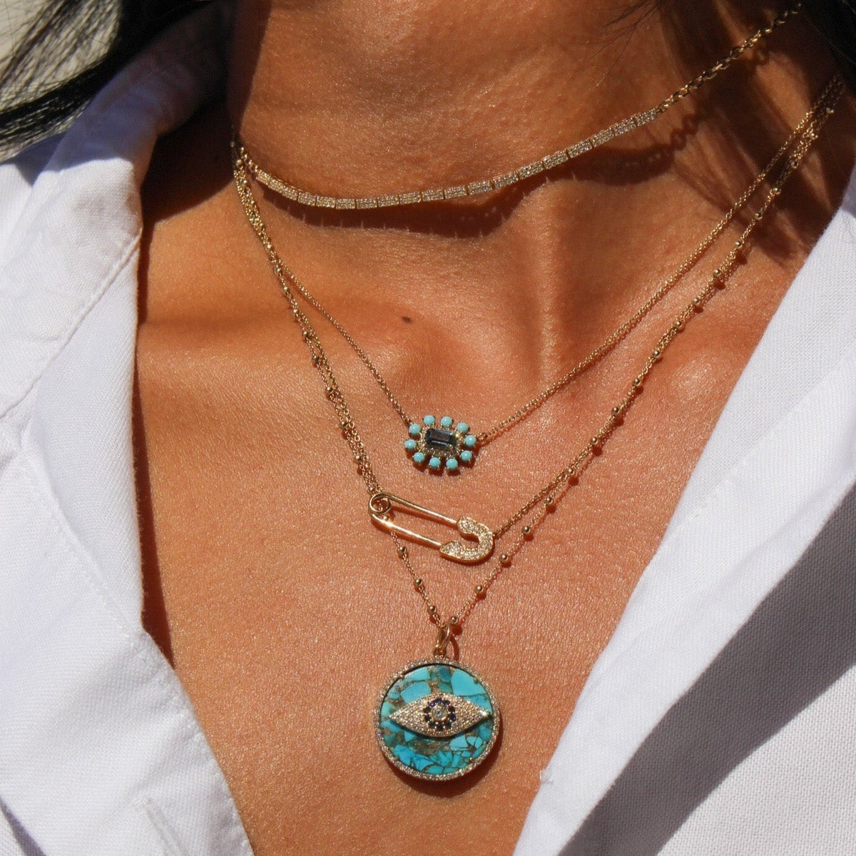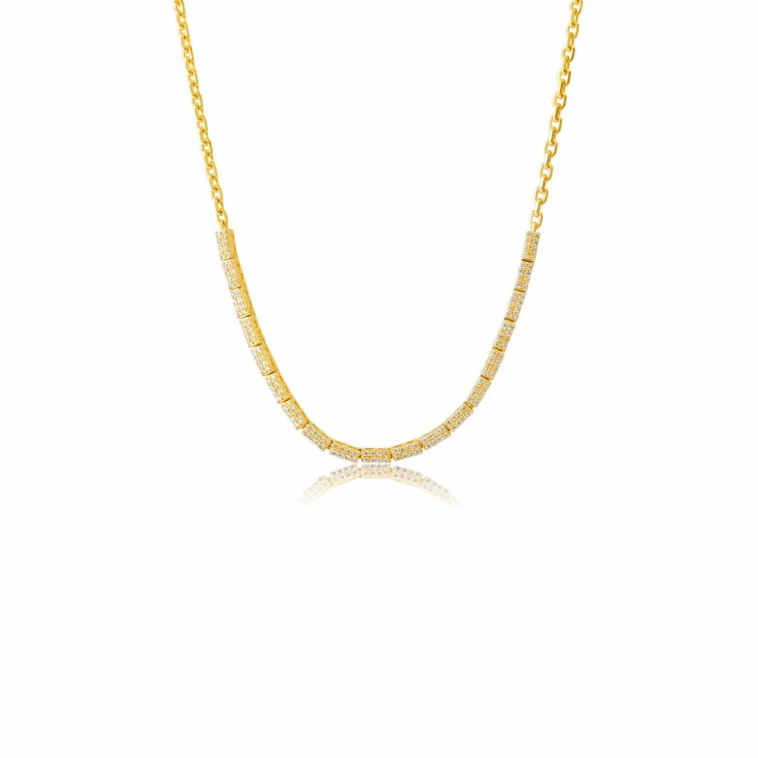 Gold Pave Diamond Rectangle Bar Tennis Necklace