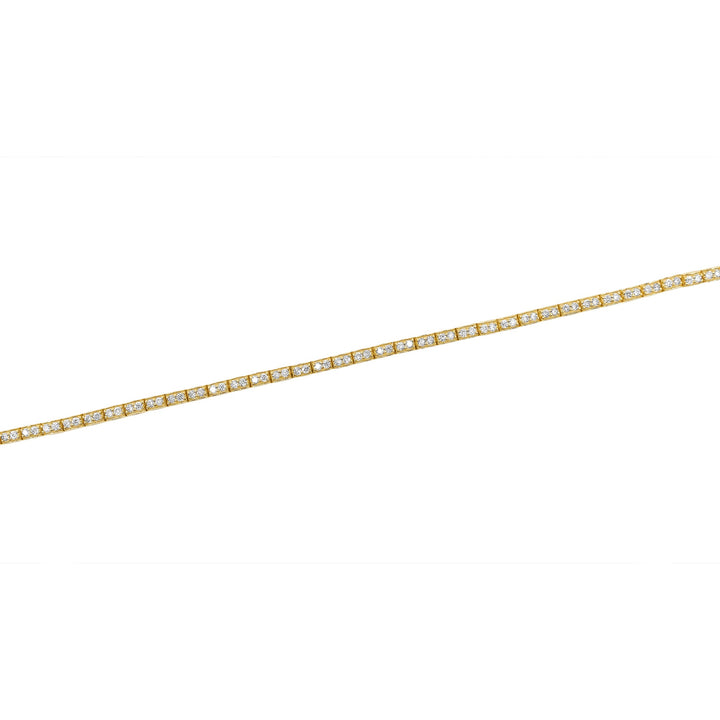This Gold Pave Diamond Tennis Bracelet by Monisha Melwani features exquisite diamonds set in 14k yellow gold. Measuring 7 inches and weighing 7.60 grams with a total diamond weight of 1.11cts, this luxurious bracelet showcases a dazzling array of pave-set diamonds along a delicate gold chain, making it the perfect accessory for adding refined sparkle to any ensemble.