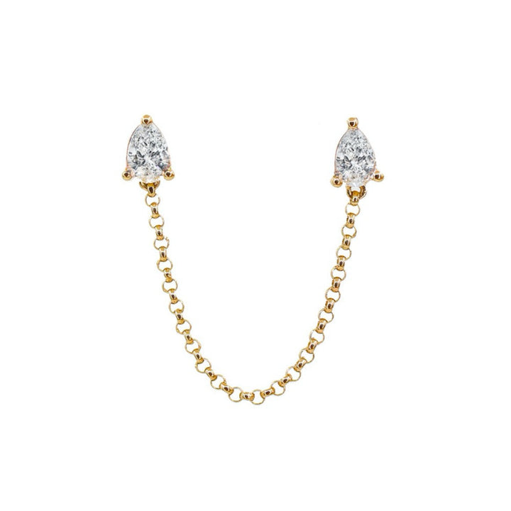 Gold Pear Diamond Chain Connecting Earring