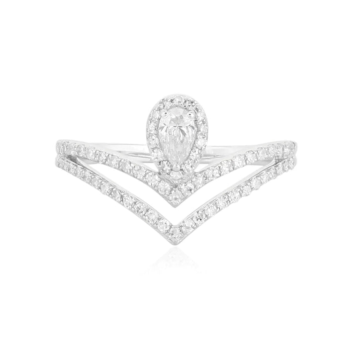 This Gold Pear Diamond Chevron Ring by Monisha Melwani features stunning diamonds set in 18k white gold. Weighing 0.35cts and available in size 7, this ring offers a modern and sophisticated design.