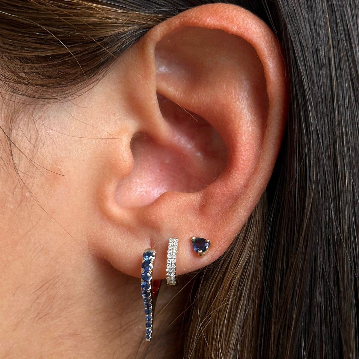 These Gold Prong Blue Sapphire Pear Earrings by Monisha Melwani feature stunning blue sapphires set in 14KT yellow gold. Sold as a single earring, the pear shape of the 5mm sapphire adds a modern twist to a classic design. These earrings are available for preorder and are perfect for anyone looking to elevate their jewelry collection with a pop of color.