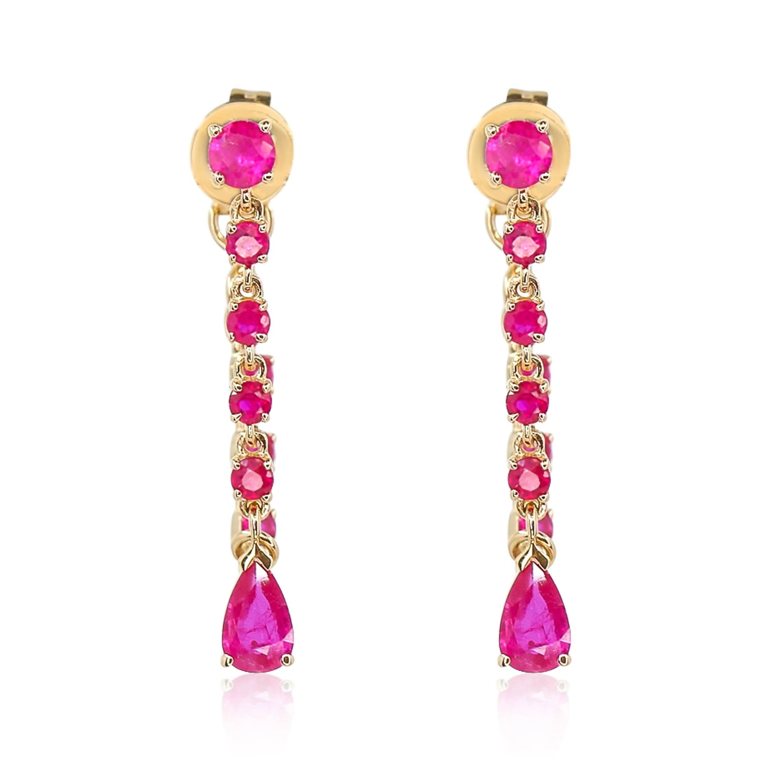 Crafted in 14KT yellow gold, featuring rubies totaling 0.56 ct. The earrings embody quality craftsmanship, ensuring they remain a timeless addition to your collection.