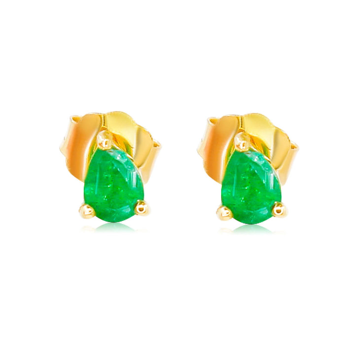Crafted in premium 14K yellow gold, featuring emeralds set in a prong design. The earrings measure 5 mm and are sold as a single, allowing for personalized styling options.