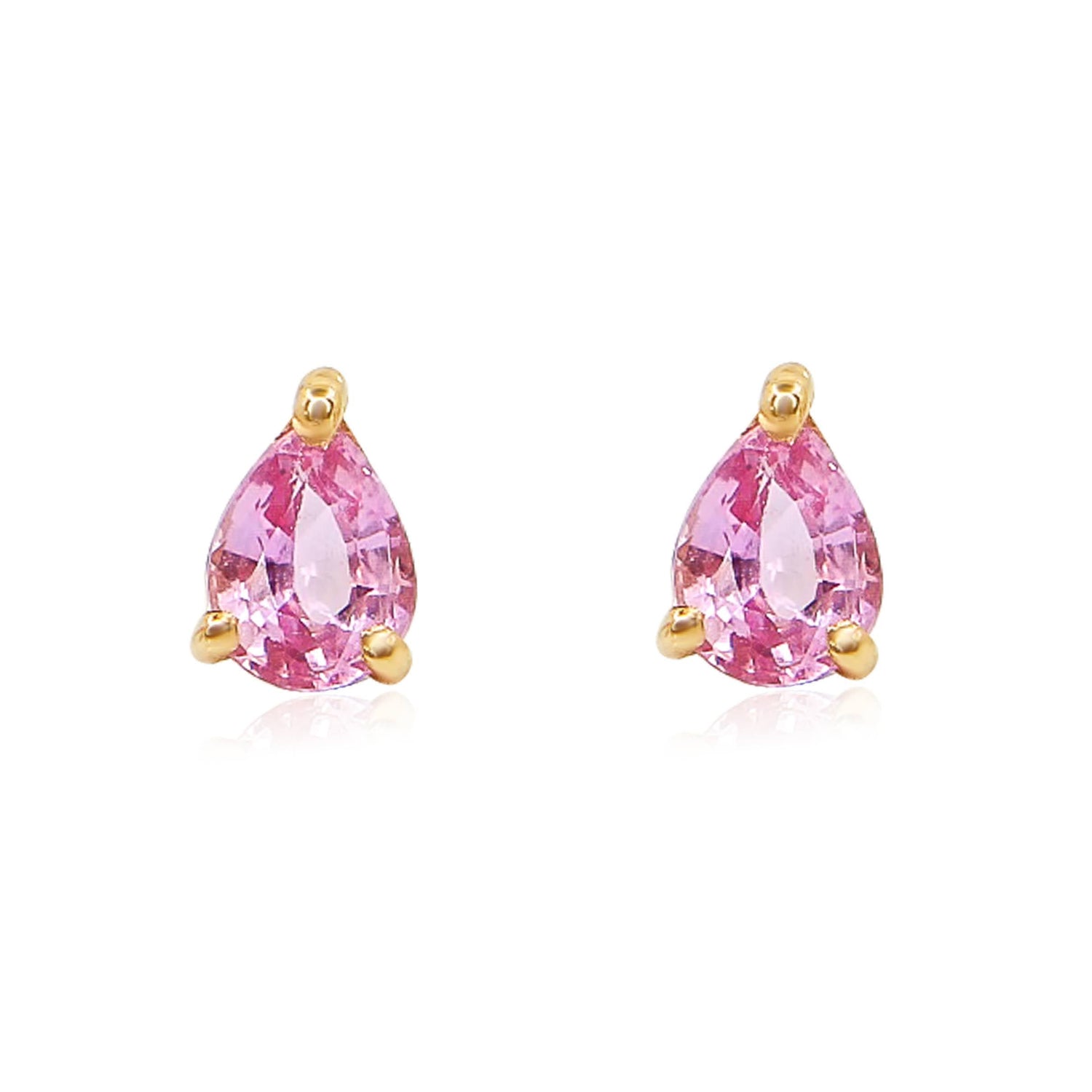 Gold Small Pink Sapphire Pear Prong Earring