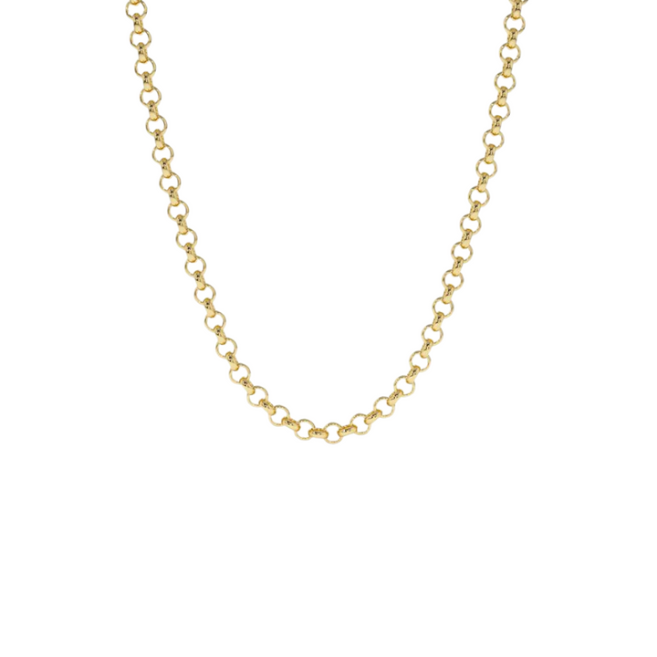 This Gold Small Rolo Chain Necklace by Monisha Melwani is a classic piece crafted from 14K yellow gold. With a length of 18 inches, the rolo chain design adds texture and elegance, making it perfect for everyday wear or special occasions. Its simplicity and versatility make it an essential addition to any jewelry collection, ideal for layering with other necklaces or wearing alone for a minimalist look.