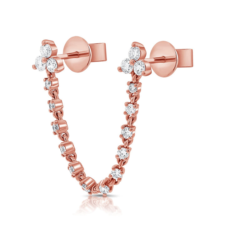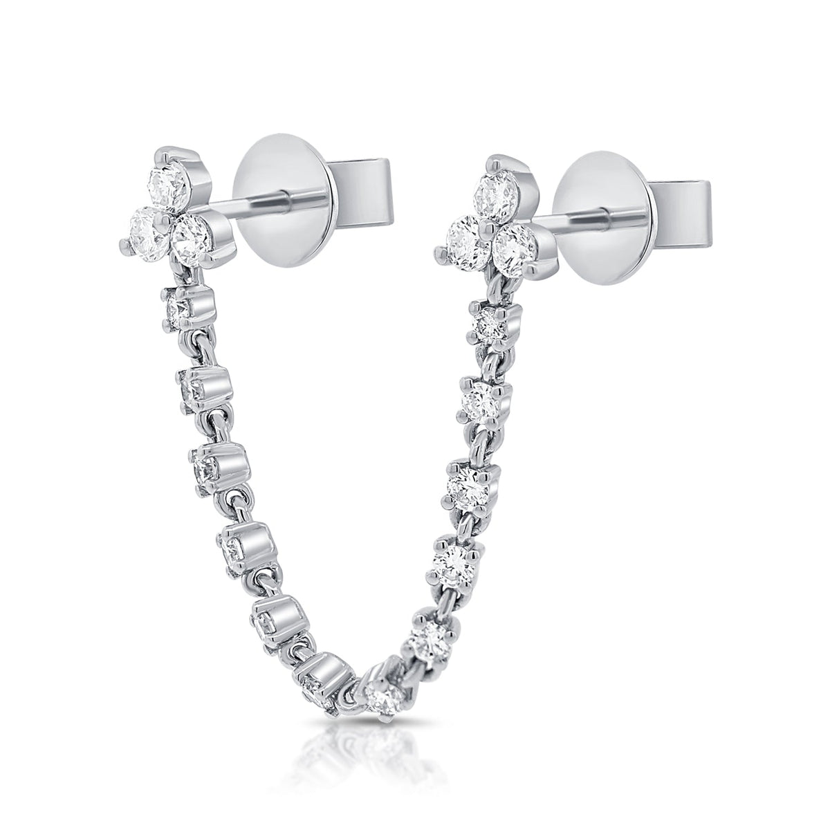 The Gold Trio Diamond Connecting Earring by Monisha Melwani features a stunning design crafted in 14K yellow gold, adorned with diamonds. Sold as a single, this earring measures 2 cm and showcases three interconnected elements, each set with sparkling diamonds that add a touch of elegance and sophistication. Perfect for making a statement on its own or mixing with other earrings, this piece is ideal for both casual and formal occasions.