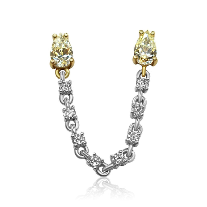 The Gold Two Tone Yellow Diamond Connecting Earring by Monisha Melwani features a unique design crafted in 18K yellow gold, showcasing a stunning combination of diamonds. Sold as a single, this earring weighs 5.88 grams and features 0.50 cts of white diamonds alongside 1.22 cts of yellow diamonds, making it a luxurious and eye-catching accessory. Perfect for adding a touch of glamour to any outfit, this earring is ideal for both everyday wear and special occasions.