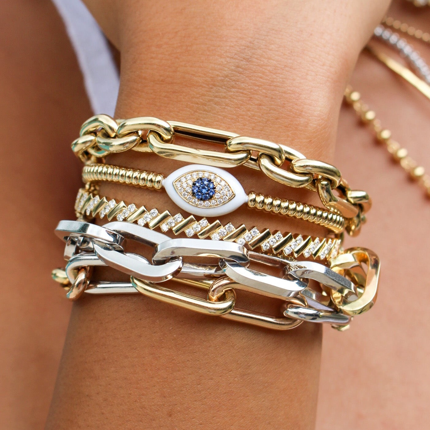 Gold White Enamel Diamond Blue Sapphire Evil Eye Bangle