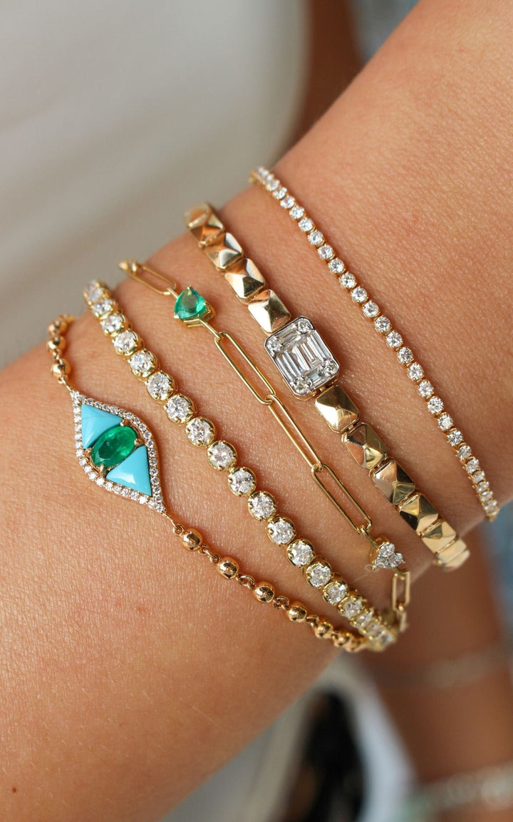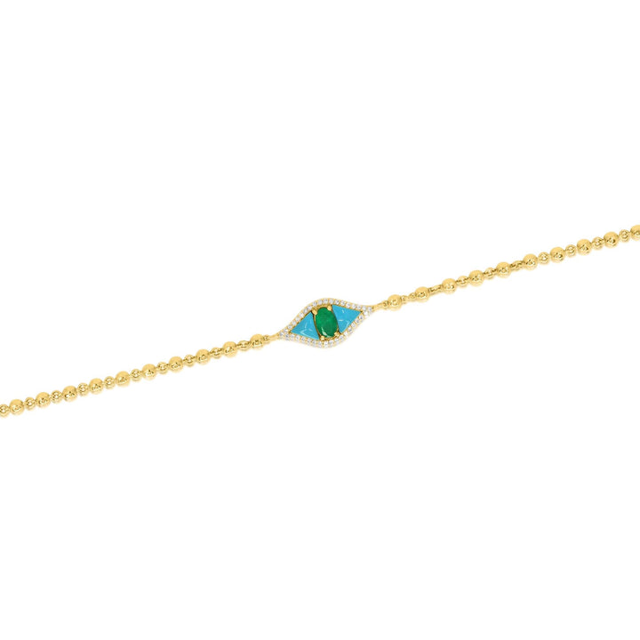 Turquoise and Emerald Pave Dainty Eye Bracelet