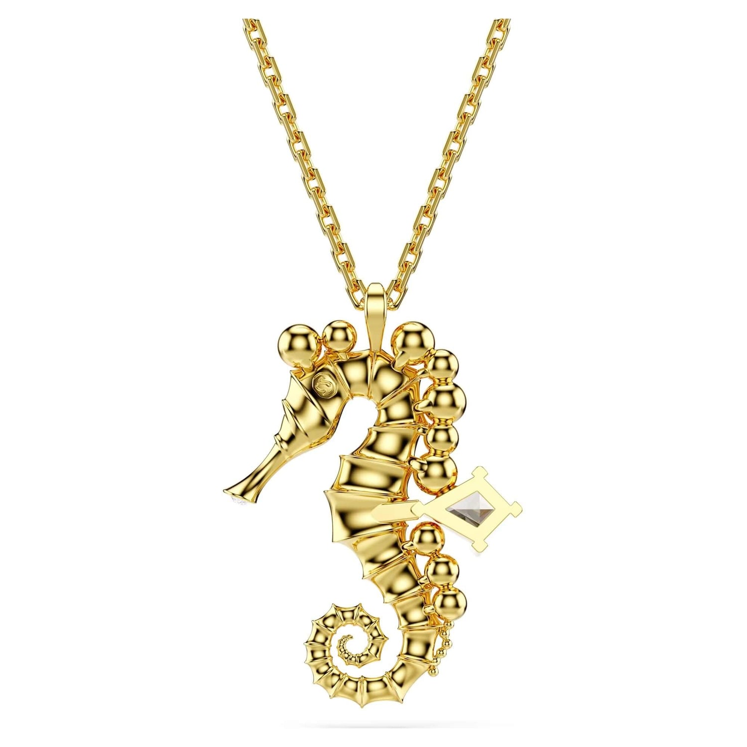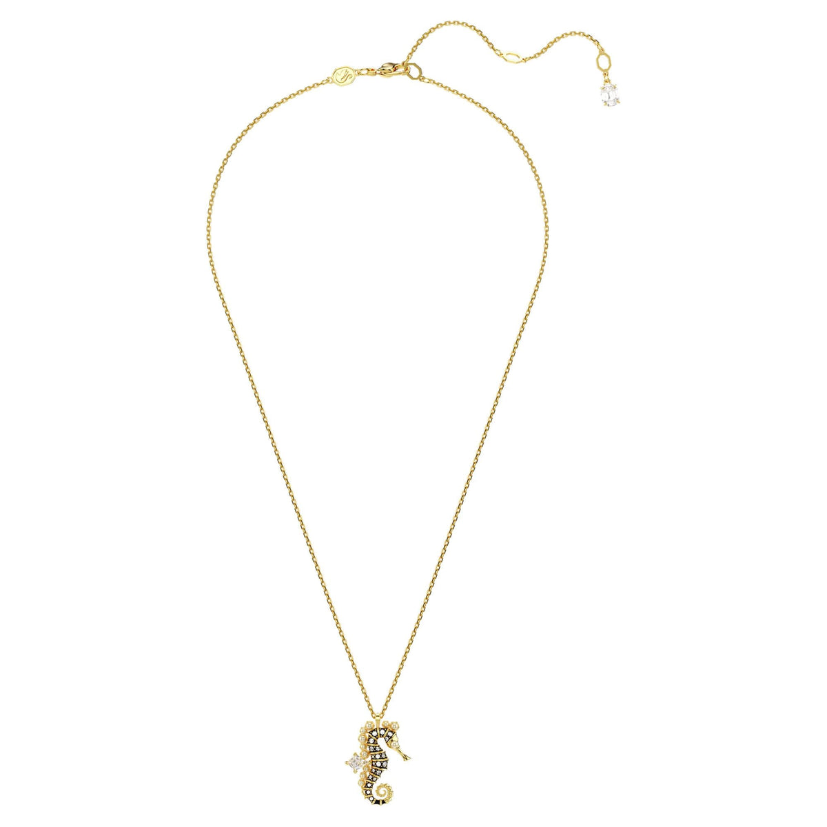 Daniel Swarovski's desire to create a diamond for everyone led to the founding of Swarovski in 1895. Inventing a machine that cut crystals more accurately than ever before, the precision-cut facets of Swarovski crystals allowed for exceptional clarity and brilliance. With a heritage spanning over 125 years, Swarovski remains a global leader in the jewelry industry, renowned for its craftsmanship, innovation, and elegance.Style notes: Dive into Swarovskis underwater world with this playful seahorse pendant. Worn on a delicate chain, the stunning piece features an oceanic motif that has been artistically created with a variety of Crystal Pearls, clear crystals, and white Swarovski Zirconia. Completed with bright touches of gold-tone metal, its design is sure to ignite the imagination. Wear it any time you feel the call of the sea.Price: Please note price may vary due to exchange rate differences or shipping, duties and taxes. Price may also vary with materials choice. Final price is calculated at checkout at the designers website. Materials: Gold-tone plated with crystals and zirconiaDimensions: Length: 16 1/2 - 19 1/4 inch. Motif size: 7/8 x 3/4 inch