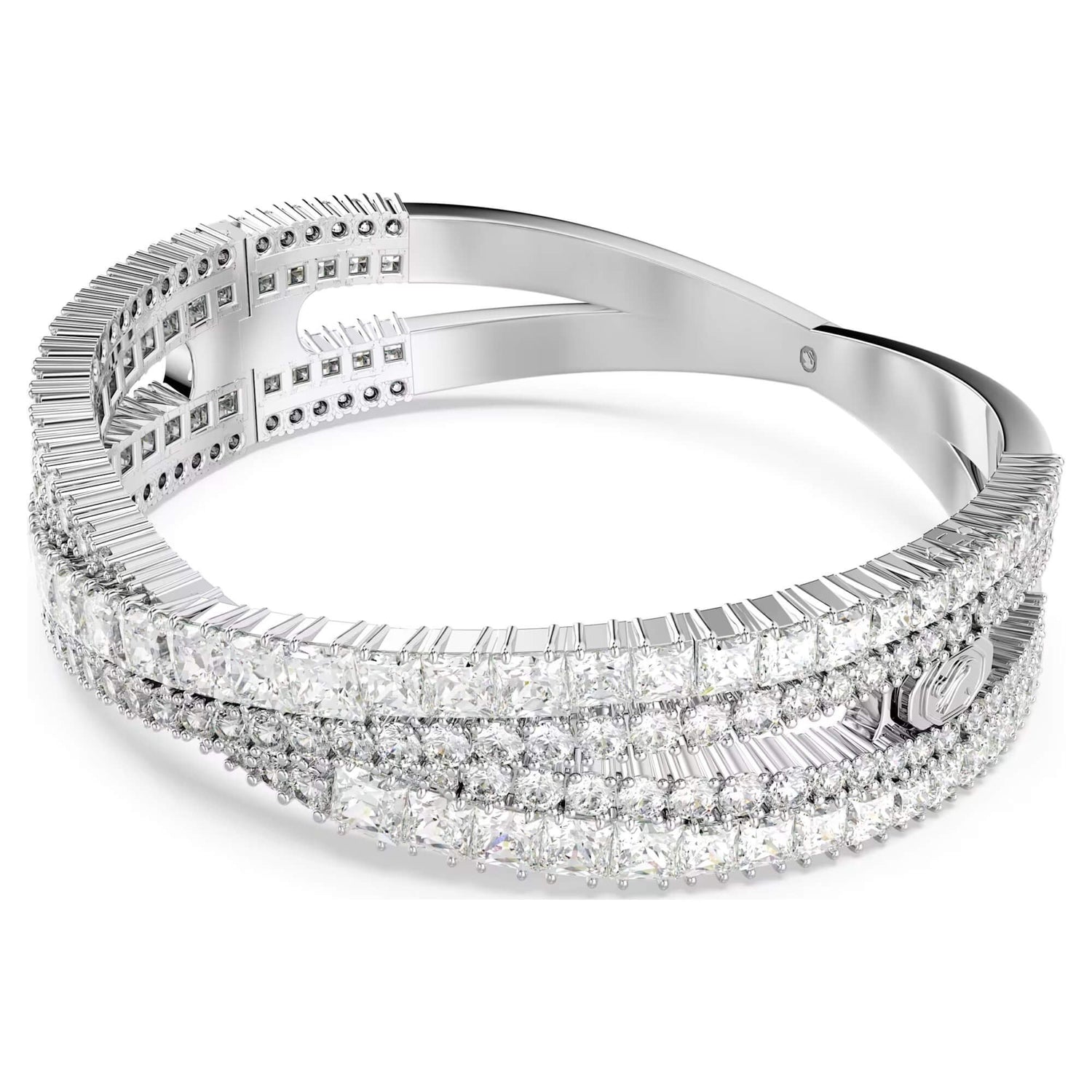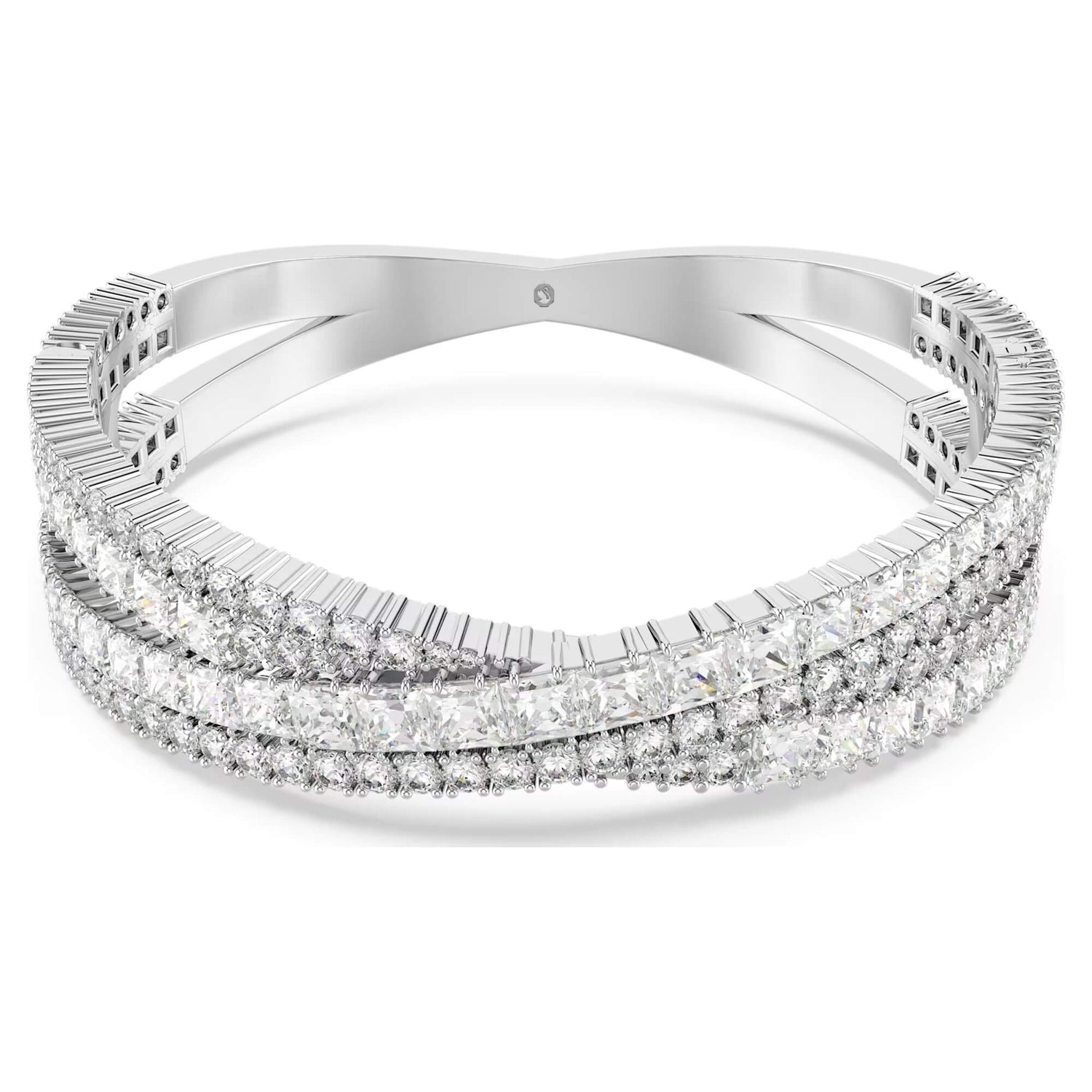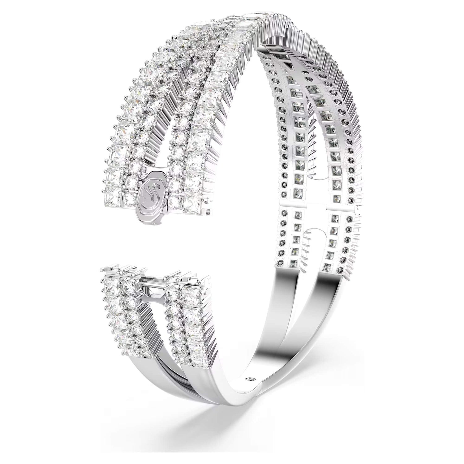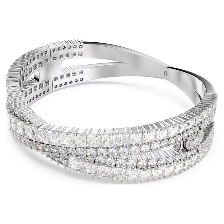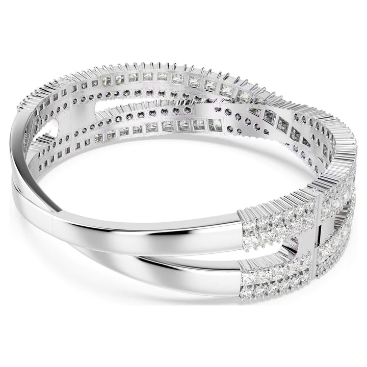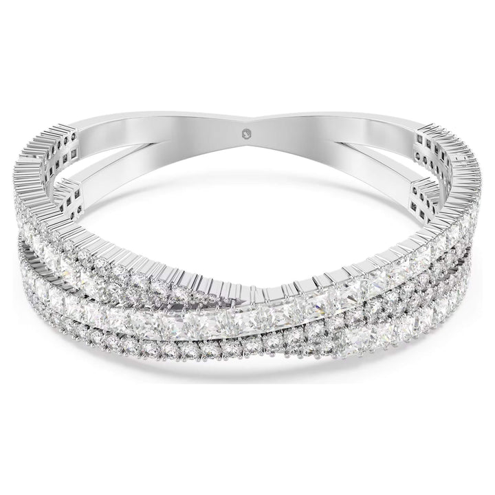 Daniel Swarovski's desire to create a diamond for everyone led to the founding of Swarovski in 1895. Inventing a machine that cut crystals more accurately than ever before, the precision-cut facets of Swarovski crystals allowed for exceptional clarity and brilliance. With a heritage spanning over 125 years, Swarovski remains a global leader in the jewelry industry, renowned for its craftsmanship, innovation, and elegance.Style notes: Inspired by the timeless infinity motif, this Hyperbola closed cuff offers enduring radiance. The rhodium-plated jewelry features a complex split hinged design, which spirals around the wrist with an array of clear Swarovski Zirconia in mixed cuts. Expertly crafted with incredible detailing, it is a statement piece that will lavish your style in luxury.Price: Please note price may vary due to exchange rate differences or shipping, duties and taxes. Price may also vary with materials choice. Final price is calculated at checkout at the designers website. Materials: Rhodium plated with zirconiaDimensions: Length: 6 3/8 inch. Width: 5/8 inch. Inner diameters: 2 1/8 x 1 7/8 inch. Opening distance: 1 5/8 inch