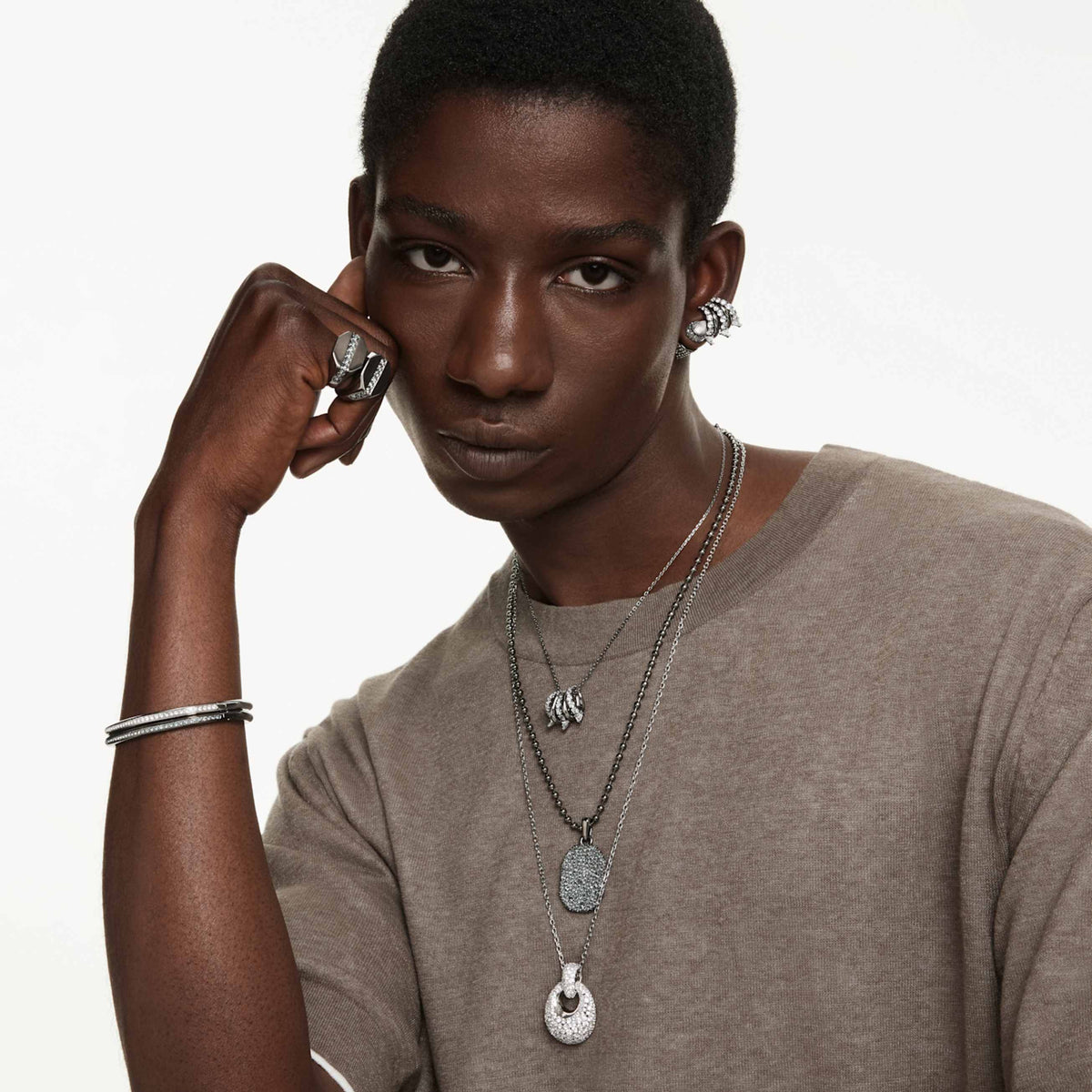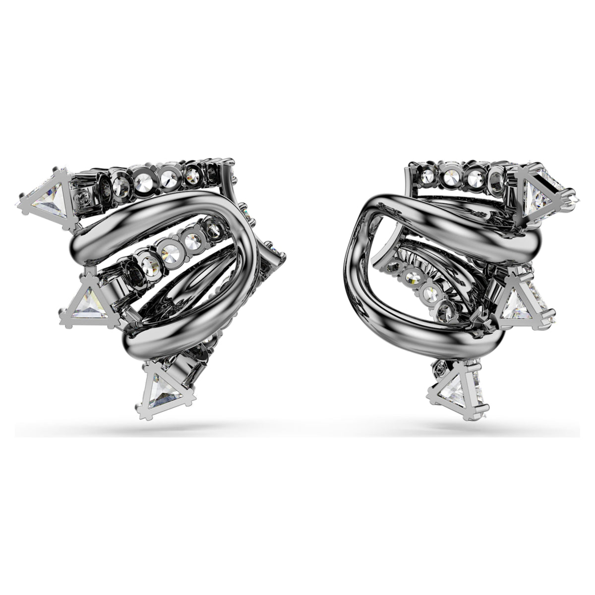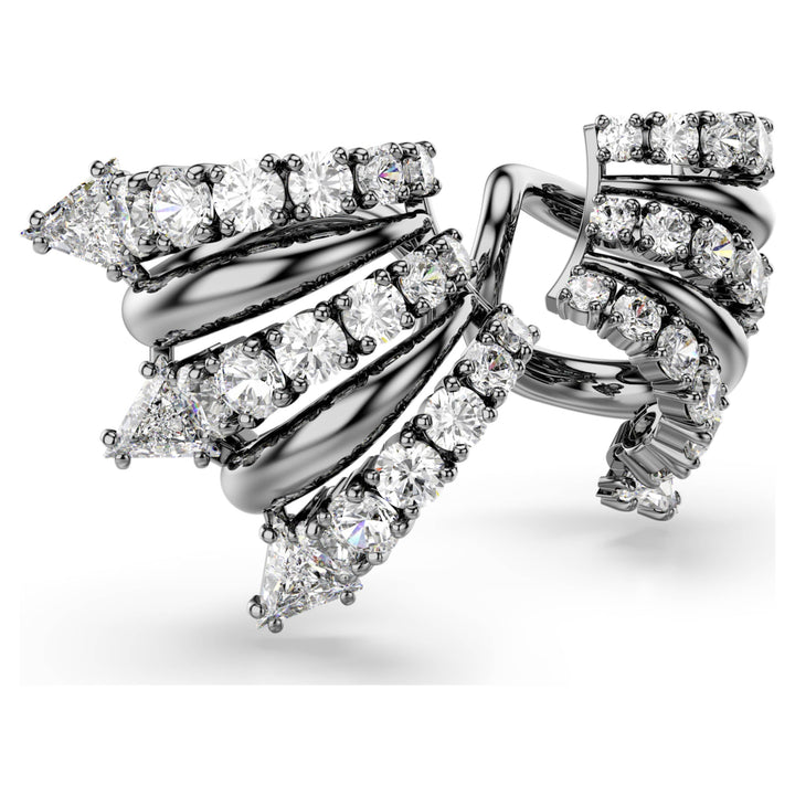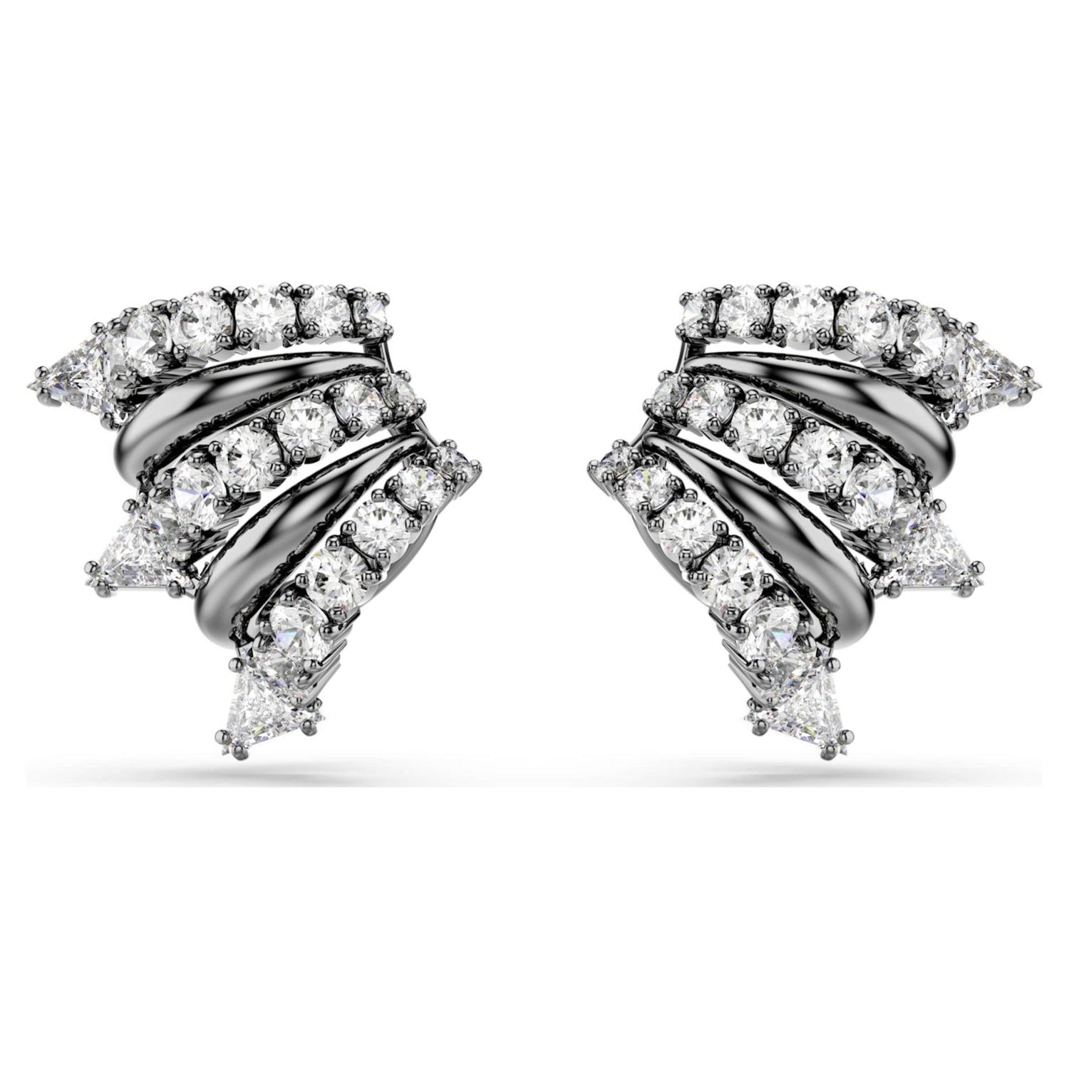 These Sublima Ear Cuffs White Rhodium Plated by Swarovski offer an eye-catching and modern take on traditional jewelry. Each cuff is crafted with dark ruthenium plating and features elegant metallic spirals alongside brilliant clear Swarovski Zirconia. The contemporary spiky tips add an edgy finish that symbolizes strength and creative individuality. These ear cuffs provide the look of multiple piercings with a comfortable and secure fit, making them an ideal choice for a sophisticated yet alternative style. Perfect for stacking alongside other studs or wearing as a standalone statement, they bring a touch of avant-garde luxury and crystalline light to any ensemble.
