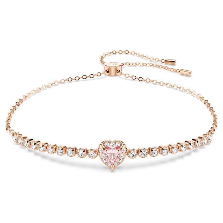 Rose gold-tone plated bracelet with clear crystals and a pink heart-shaped motif.