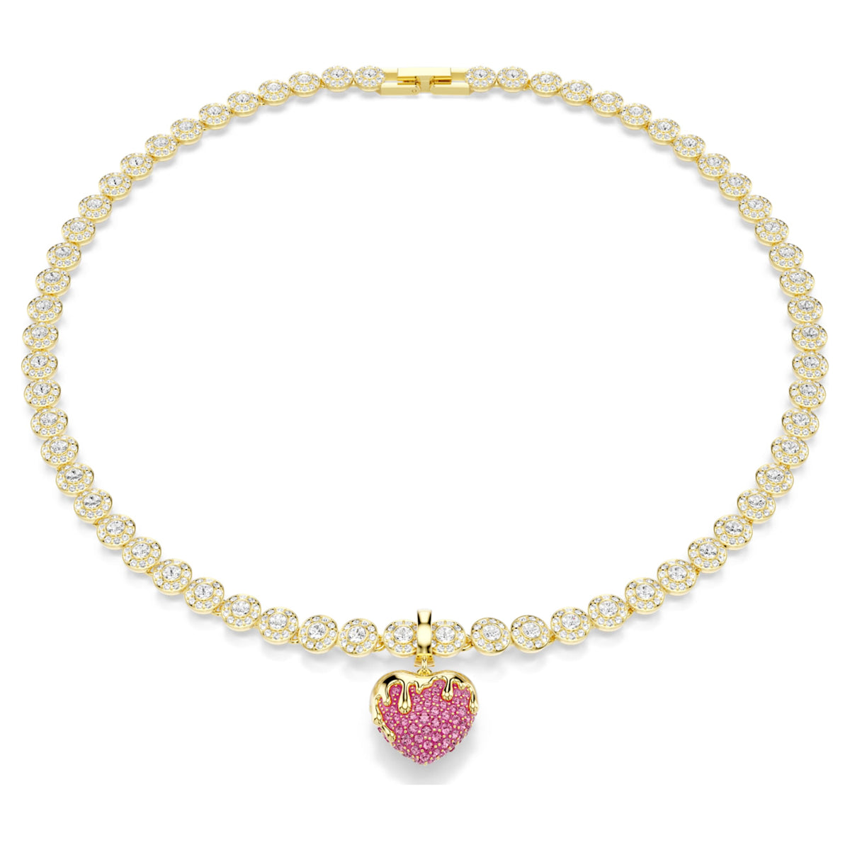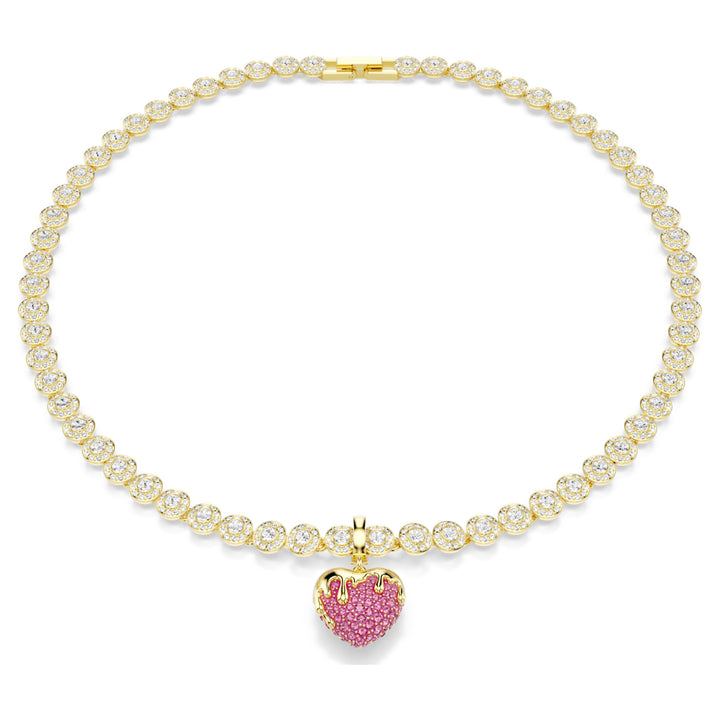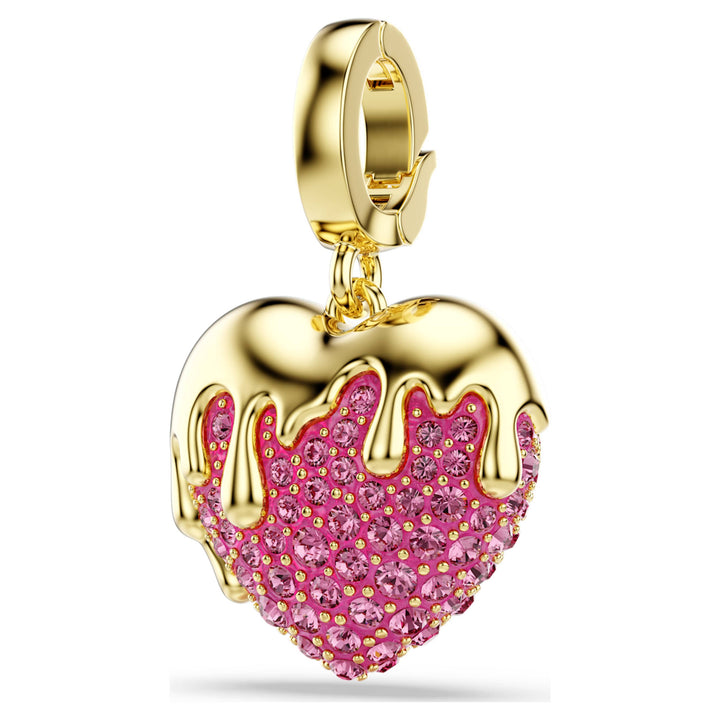 This Idyllia Charm by Swarovski adds a romantic and personal touch to your daily jewelry collection. The heart-shaped design is decorated with shimmering clear crystals and finished with a luxurious gold-tone plated glaze in a soft pink hue. It features a custom-designed clasp that offers great versatility, allowing you to attach it to various necklaces and bracelets from your Swarovski range. Symbolizing love and a romantic spirit, this charm is a perfect way to customize your look or to give as a meaningful gift to someone who carries love in their heart.