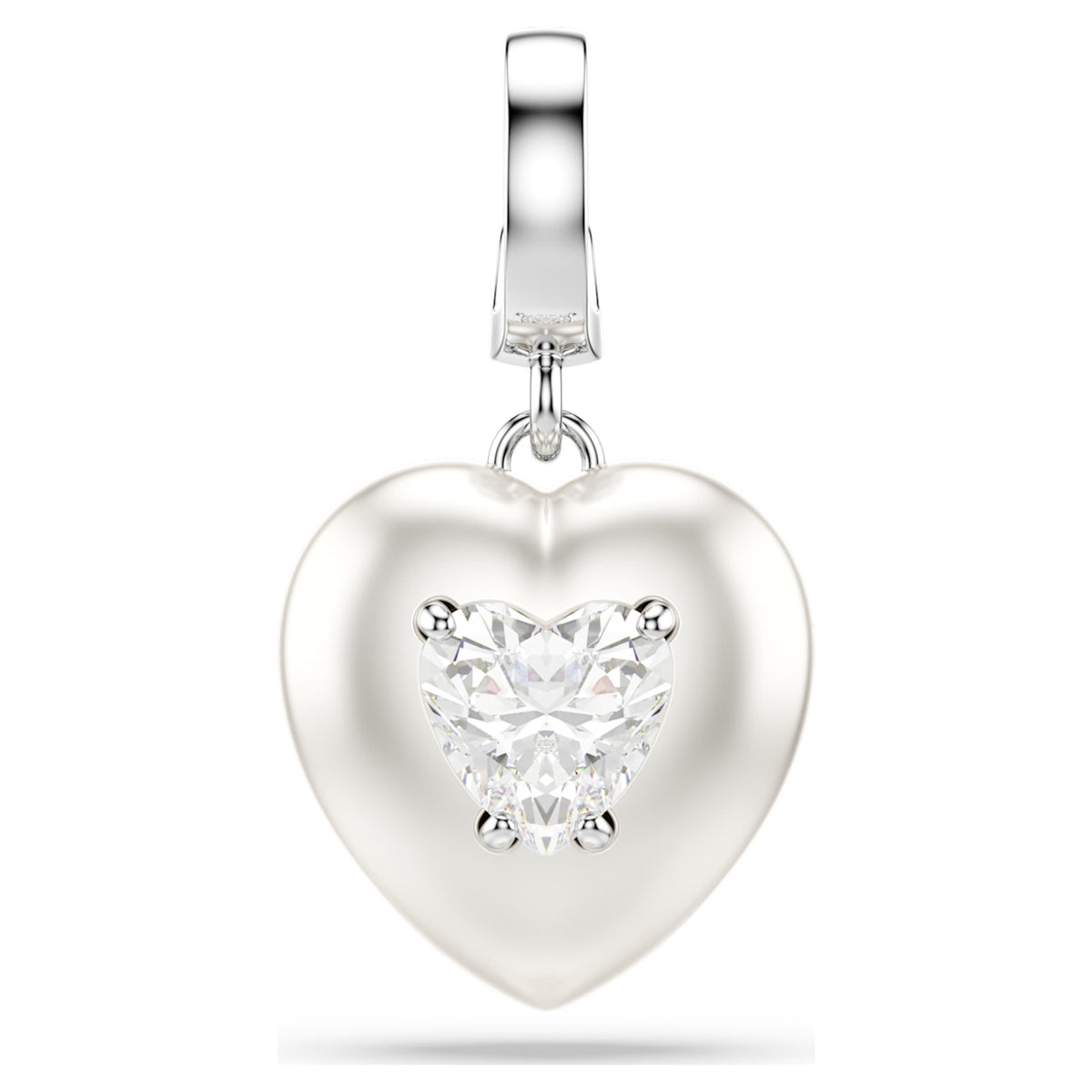 IDYLLIA CHARM MIXED CUTS PEARL COLORED COATING HEART WHITE RHODIUM PLATED