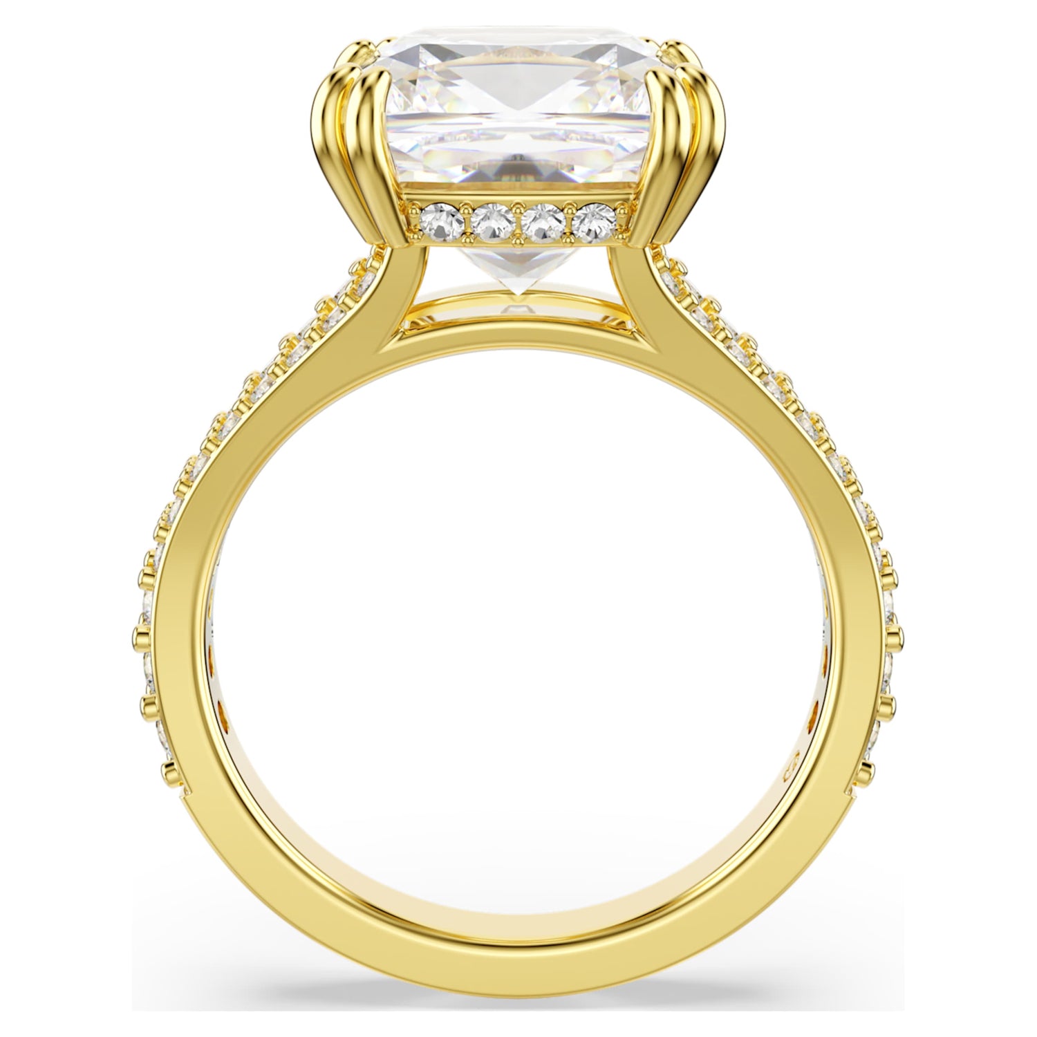Crafted with a gold-tone finish, this cocktail ring features a square-cut Swarovski Zirconia and clear crystal pavé accents.