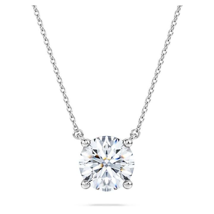 This Eternity Solitaire Pendant by Swarovski is designed to give your style a radiant uplift with a substantial and luxurious presence. The 14K white gold design features a round, prong-set laboratory grown diamond totaling 2.0 carats, expertly faceted for maximum shine and impact. This pendant symbolizes abundance and a grand, enduring love. It is IGI certified, guaranteeing exceptional quality. Wear it on its delicate chain to create a breathtaking focal point. Pair with matching studs for a beautiful, cohesive glow that exudes sophisticated, high-end glamour.