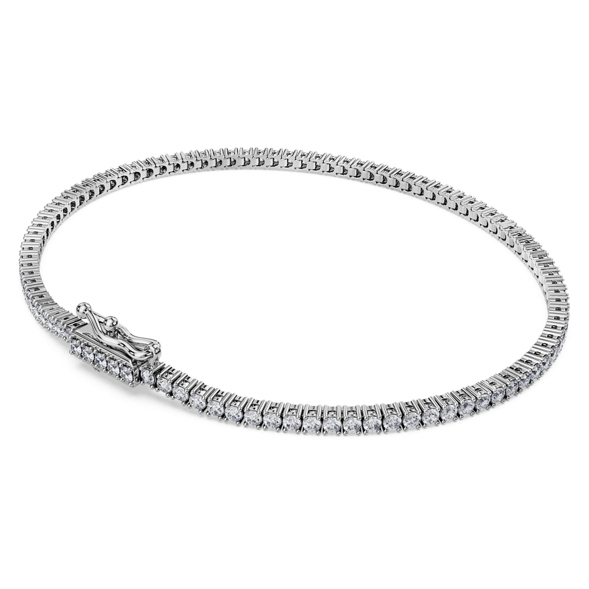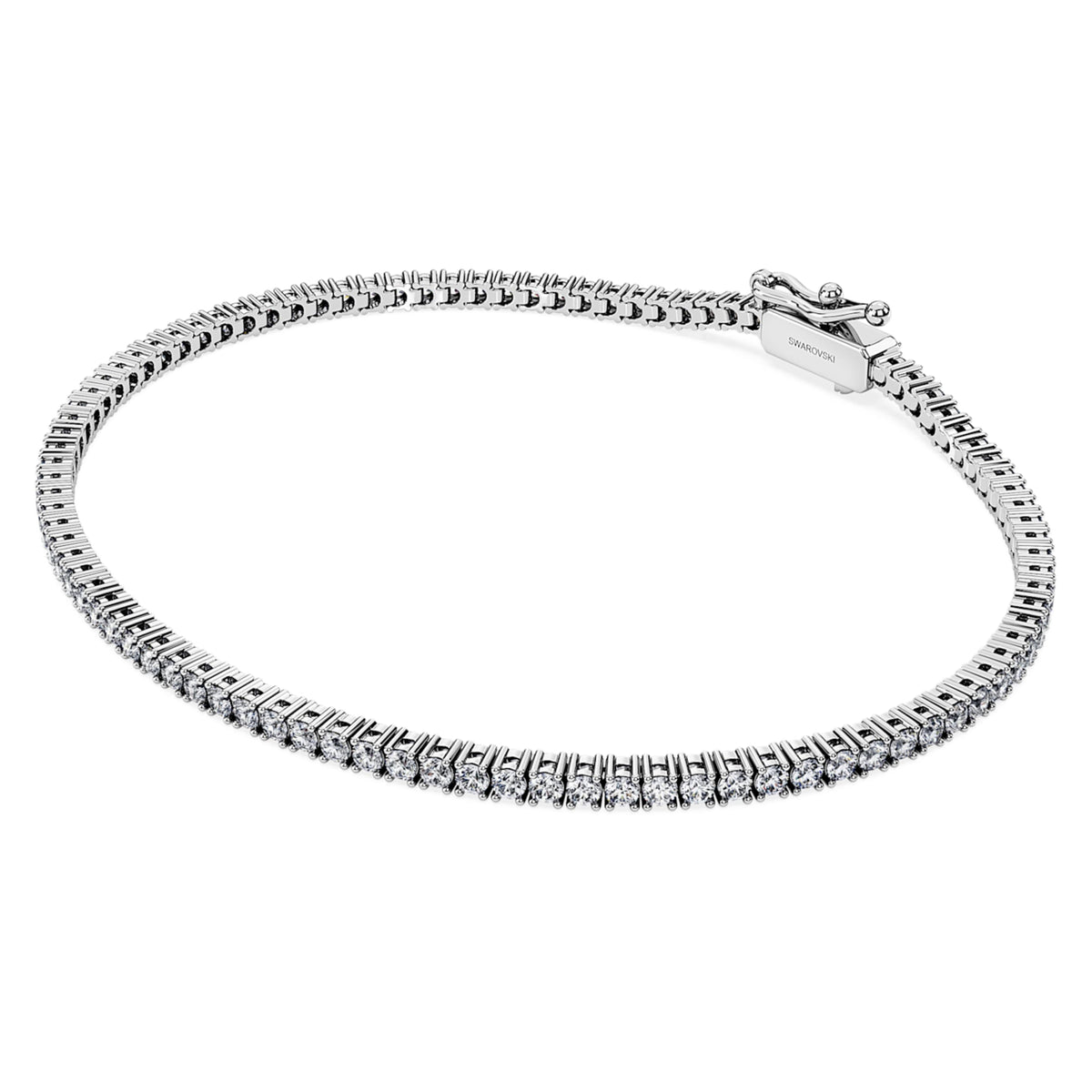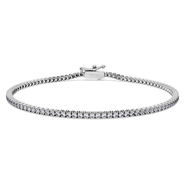 This Eternity Tennis Bracelet by Swarovski is designed to turn heads with its shimmering all-around strand of laboratory grown diamonds. The luxurious 14K white gold setting holds a total of 1.5 carats of stones presented in beautiful round cuts, creating a continuous loop of brilliance. This piece symbolizes eternal grace and a modern approach to classic luxury. It is an ideal staple for the woman who values sophisticated craftsmanship. Pair yours with a matching tennis necklace or ring to complete a timeless look that radiates brilliance for any occasion.
