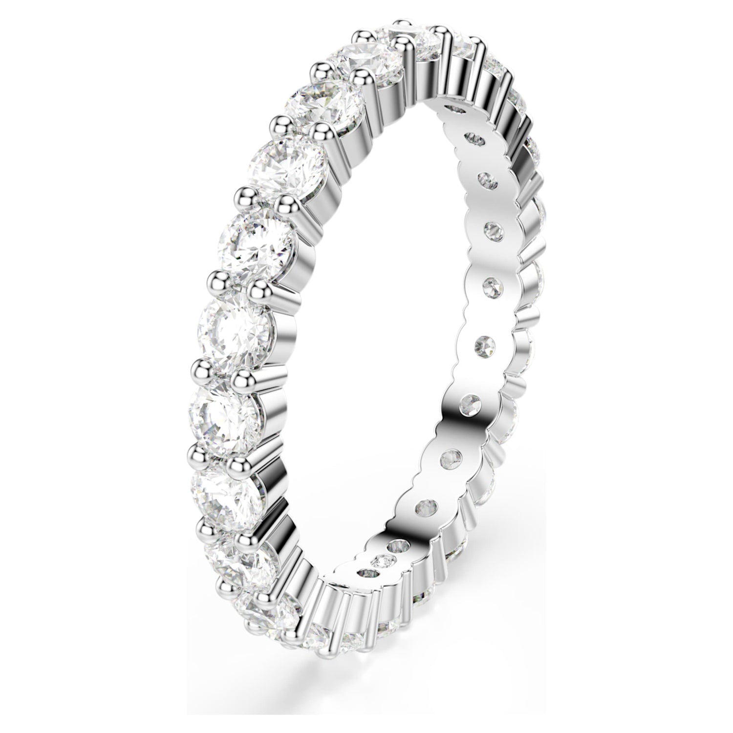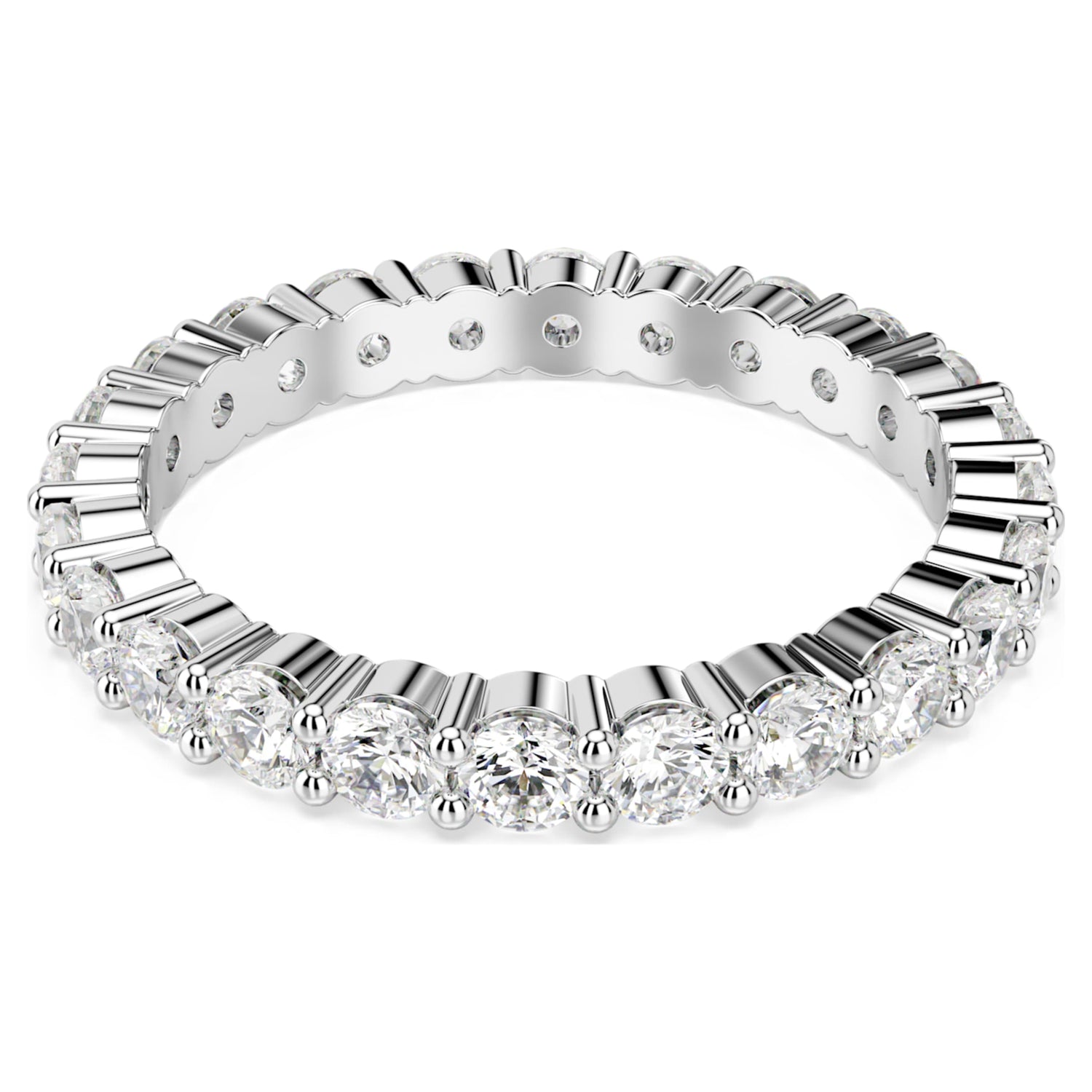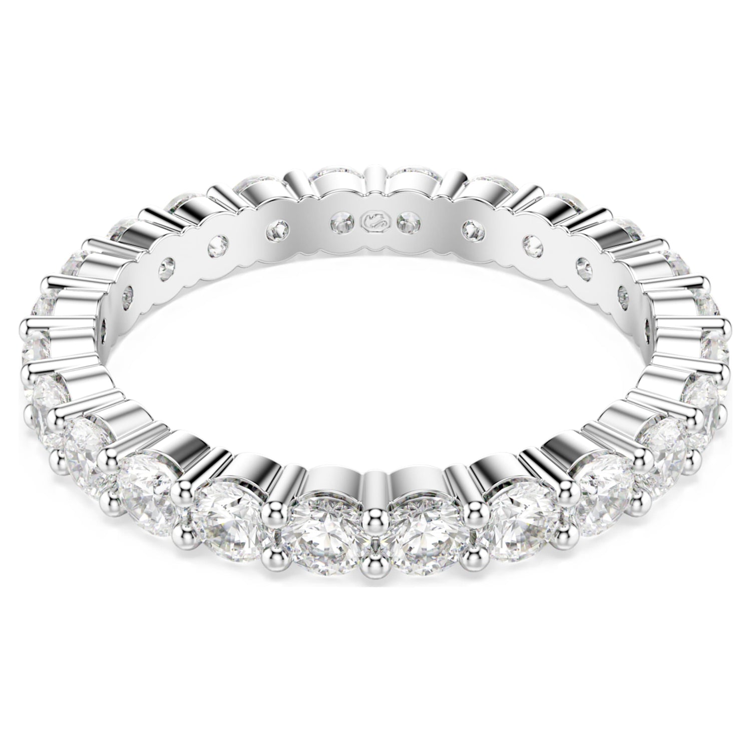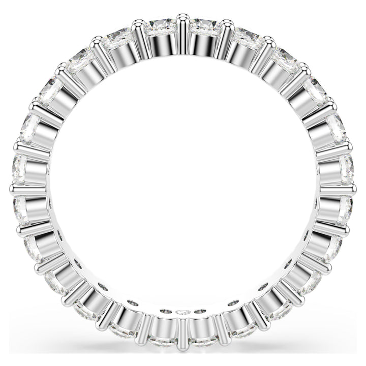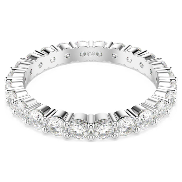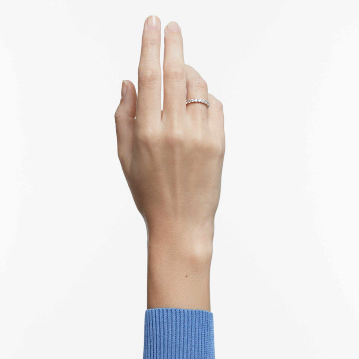 This Matrix Vittore Ring Round Cut White Silver Tone Finish by Swarovski offers a bold yet refined expression of classic sparkle. The wider band is fully embellished with precision-cut clear stones, creating a seamless circle of light around the finger. Elegant and confident, the design reflects enduring sophistication while remaining versatile for daily wear. Ideal for stacking with complementary styles or wearing alone as a statement, this ring symbolizes timeless beauty and modern confidence. Its clean lines and radiant finish make it a staple piece with lasting appeal.